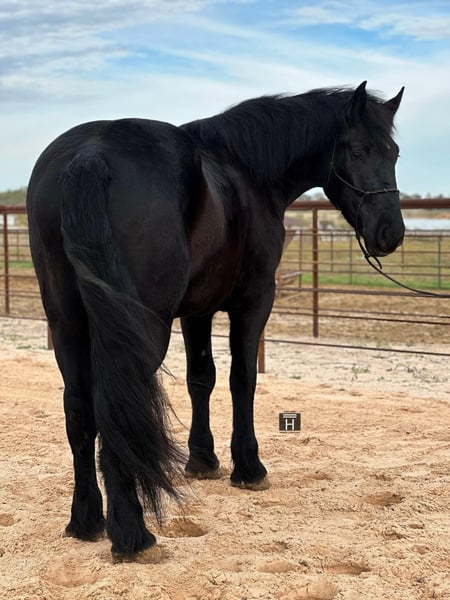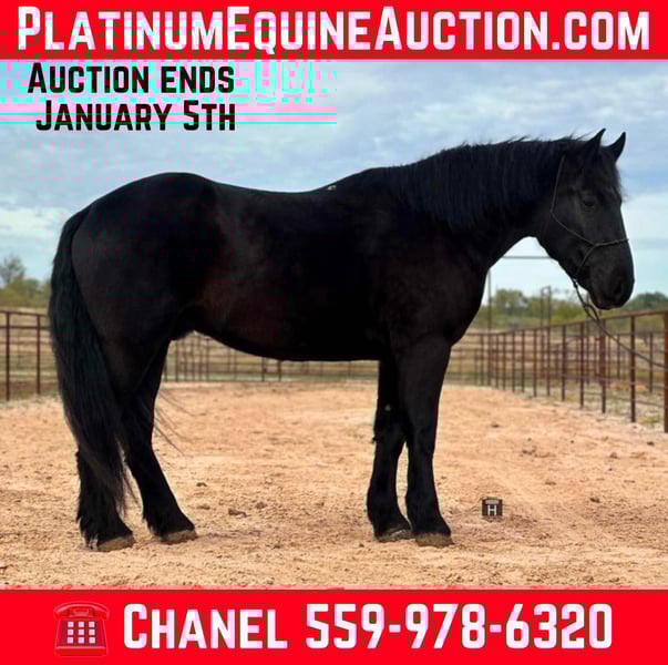 ONLINE AUCTION Place your bids at www.PlatinumEquineAuction.com Starting Bid $3500 Auction ends January 5th, 2024 Need a new saddle? Check out White Rock Saddles on our website or Facebook! Sniper is a big, jet black draft cross gelding standing 16.3 hands tall and is 4 years old. He is athletic, and very broke and responsive. Sniper can show lope fancy circles with natural collection and beautiful lead departures. He is super soft and light to ride. He will ride English or Western and is broke to drive a cart and farm equipment. Sniper is awesome out on the ranch and trails. He is perky eared and happy to go do things. He is kind eyed, quiet, and always listening to his rider. He has excellent ground manners and hauls well. He is the same horse every time we pull him out and has never offered to be anything but a complete gentleman. Sniper is sound and UTD. FMI call/text Holland Horse Co. Chanel 559-978-6320. We are happy to answer questions or help arrange shipping nationwide. ONLINE AUCTION Place your bids at www.PlatinumEquineAuction.com Starting Bid $3500 Auction ends January 5th, 2024 Need a new saddle? Check out White Rock Saddles on our website or Facebook!