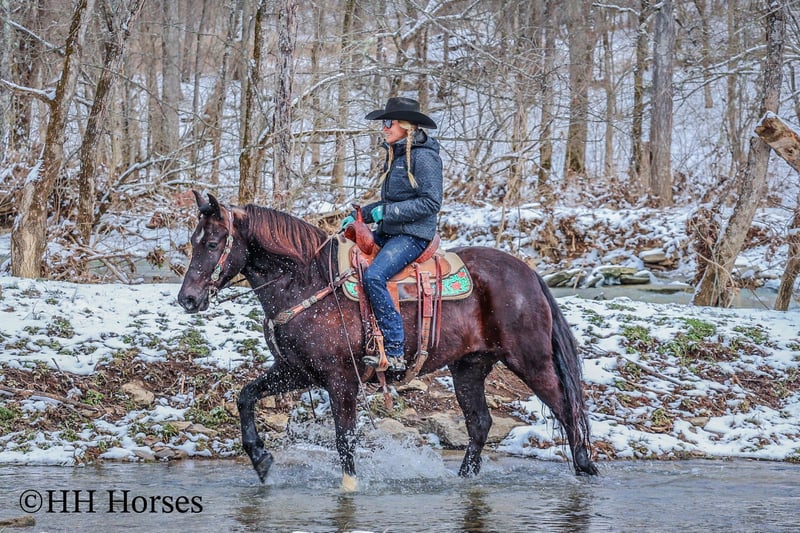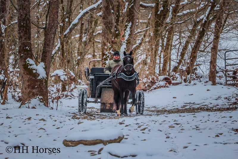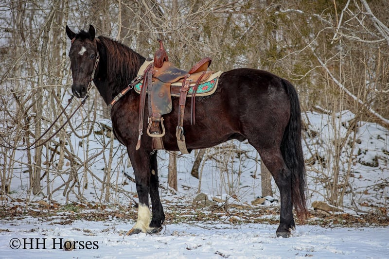 ONLINE AUCTION Place your bids at www.PlatinumEquineAuction.com Starting Bid $3500 Auction ends March 9th, 2025 Need a new saddle? Check out White Rock Saddles on our website or Facebook! This is “UNCLE HERSHEL”, a handy broke, professionally trained, smart, and gentle BLACK PERCHERON CROSSBRED GELDING that is broke to ride and drive. This gelding stands 15.1 hands tall and is 6 years old. He has been used for ranch work, driving, and been hooked to farm machinery. He has good bone and feet with an attractive refined head. He rides around nicely and has a collected canter, a big stop, and he just floats across the ground. He is sure footed, smooth, and a pleasure to ride or drive. He has been through the cross country driving courses, on the main roads, and in the woods. He will cross deep water under harness or tack. He is traffic safe, not spooky, and easy to harness and hitch. He is cool horse that will ride around and get where you want him to be. He has lots of feel in the bridle and seat. He is attractive, very bright, has a head full of sense, and he is personable. This gelding is one you don’t want to miss out on. If you’d like more info or want to make a Buy It Now Offer contact HH Horses Erin 304-238-4155 Located in Flemingsburg, KY. ONLINE AUCTION Place your bids at www.PlatinumEquineAuction.com Starting Bid $3500 Auction ends March 9th, 2025 Need a new saddle? Check out White Rock Saddles on our website or Facebook!