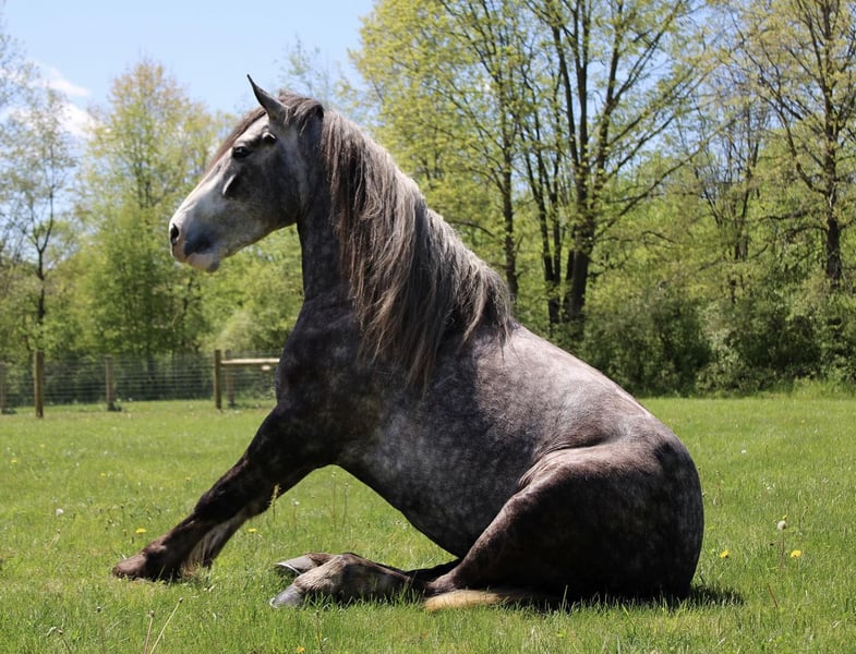 ONLINE-AUKTION Geben Sie Ihre Gebote unter www.PlatinumEquineAuction.com ab. Startgebot $3500 Die Auktion endet am 9. Juni 2024 Brauchen Sie einen neuen Sattel? Schauen Sie sich White Rock Saddles auf unserer Website oder Facebook an! "Cinnamon Twist" oder Cinnamon, wie wir ihn nennen, ist nichts weniger als spektakulär. Von seinem Verstand bis zu seiner Farbe gibt es nichts, was ihm fehlt. Cinnamon ist ein 15,3h großer, kräftiger Drum Horse (Gypsy Vanner Percheron Kreuzung) gescheckter Schimmelwallach. Er ist 5 Jahre alt. Cinnamon hat eine unglaubliche Mähne und Schweif und eine leichte Befederung. Er hat ein wunderschönes Exterieur und seine Schimmel haben Schimmelflecken. Er ist nicht nur atemberaubend, sondern auch sehr sensibel. Cinnamon geht im Schritt, Trab und Galopp mit Leichtigkeit. Alle seine Gangarten sind so angenehm wie das Schweben auf einer Wolke. Er hat jahrelanges Natural-Horsemanship-Training genossen und reitet im Schritt, Trab, Galopp und sogar über Sprünge völlig wackelfrei. Er bewegt sich mühelos aus dem Sitz und dem Bein heraus. Er war schon in der Stadt, im Verkehr, im Wald und im Wasser. Er war in der Arena und auf dem Feld. Dieser Kerl kommt mit jedem Reiter an Bord überall hin. Er geht Englisch, Western und sogar Bareback. Er weiß, wie man fährt und liebt es. Cinnamon hat alles, was das Herz begehrt, wenn es um sein Tricktraining geht. Er sitzt, legt sich hin und verbeugt sich, wenn man ihm auf die Brust oder den Knöchel klopft. Er hat schon Planen, Regenschirme, Yogabälle, Brücken, aufblasbare Dinosaurier und vieles mehr gesehen. Es wird Ihnen schwer fallen, ihn zu erschrecken. Dieser Wallach hat schon mehrere Jagdsportarten absolviert. Er wurde auch zum Treiben von Rindern eingesetzt. Er springt in hervorragender Form. Er wurde auf Turnieren vorgestellt und im Unterricht für Kinder ab 5 Jahren eingesetzt. Dies ist ein einzigartiger Fund, der eine Bereicherung für jeden wäre, der ein gefiedertes Pferd sucht, das mit jedem in jeder Situation zurechtkommt. Bitte rufen Sie Ellesse Schwartz unter 248-390-6831 an oder schreiben Sie ihr eine SMS. Cinnamon wohnt in Howell, MI 48855. ONLINE-AUKTION Geben Sie Ihre Gebote unter www.PlatinumEquineAuction.com ab. Startgebot $3500 Die Auktion endet am 9. Juni 2024. Brauchen Sie einen neuen Sattel? Schauen Sie sich White Rock Saddles auf unserer Website oder Facebook an!