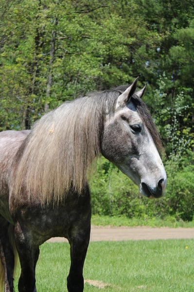 ONLINE AUCTION Place your bids at www.PlatinumEquineAuction.com Starting Bid $3500 Auction ends June 9th, 2024 Need a new saddle? Check out White Rock Saddles on our website or Facebook! “Cinnamon Twist” or Cinnamon as we call him is nothing short of spectacular. From his mind to his color there’s nothing he’s lacking. Cinnamon is a 15.3hh stout made Drum horse (Gypsy Vanner Percheron cross) dappled grey gelding. He is 5 years old. Cinnamon has an incredible mane and tail and light feathering. He has gorgeous conformation and his dapples have dapples. Not only is he stunning, he is sensible. Cinnamon will walk, trot, and canter with ease. All of his gaits are as comfortable as floating on a cloud. He has had years of natural horsemanship training and will ride completely tackless at the walk, trot, canter and even over jumps. He moves off of your seat and leg effortlessly. He has been in the city, in traffic, in the woods and in water. He has been in the arena and the fields. This guy will go anywhere with any rider onboard. He goes English, Western, and even bare back. He knows how to drive and loves it. Cinnamon has all the bells and whistles when it comes to his trick training. He will sit, lay down, and bow with a simple tap on his chest or ankle. He has seen tarps, umbrellas, yoga balls, bridges, inflatable dinosaurs, and much more. You will be hard pressed to spook him. This gelding has been on several hunter paces. He has also been used to round cattle. He jumps in beautiful form. He has been to schooling shows and used in lessons for kids as young as 5 years old. This is a unique find that would be an asset to anyone looking for a feathered horse that anyone can get along with anyone in any situation. Please call or text Ellesse Schwartz at 248-390-6831. Cinnamon lives in Howell, MI 48855. ONLINE AUCTION Place your bids at www.PlatinumEquineAuction.com Starting Bid $3500 Auction ends June 9th, 2024 Need a new saddle? Check out White Rock Saddles on our website or Facebook!
