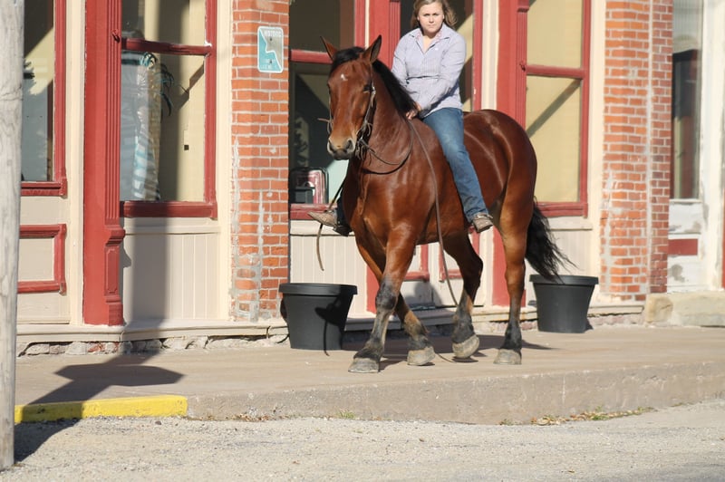 🎲𝓽𝓱𝓮 𝐑𝐈𝐃𝐄𝐑'𝐒 𝓒𝓱𝓸𝓲𝓬𝓮🎲 Happening now thru MONDAY | NOVEMBER 17th - Available EXCLUSIVELY on HorseBid's website! For more details and to register visit: www.Horsebid.com CONSIGNOR CONTACT: Triple B Horses 641-680-1707 LOCATION: Plano, Iowa BREED: Percheron/ QH REGISTERED: No COLOR: Bay HEIGHT: 15.3 AGE: 8 GENDER: Gelding Let me introduce Brutus- if you were to google “built like a brick house” He is the first picture that would pull up! Brutus is WIDE! He is the perfect age at 8 years old and stands 15.3 hands tall! He the perfect cross of Percheron and Quarter Horse. I don’t know even know where to begin to describe how this guy rides. He is PHENOMENAL! He is user friendly, soft, supple, and so smooth! For as big as he is he is as sure footed as a mule! Brutus originally came from a dude ranch out west and ended his carrier there just because he was “to broke” for the city people. But don’t let that scare you! Brutus can still easily be rode and enjoyed by a begginer under guidance! He will side pass, pivot, lope collected circles, and plant his butt in the dirt! Out on the trails he will cross water, logs, and ditches with ease! He is also traffic safe and rides through town with no issues! Take this big bus up the local gas station and pack all the beverages you want back home on him! Brutus is currently owned by Noah Troyer and is with me on consignment. Noah has rode this horse to the pond and fished right off his back. He’s packed several string full of fish back home on him. He’s helped move cattle for the neighbor, and he has also drove him! There truly isn’t any job Brutus won’t do! He has no vices, no bad habits, easy keeper. 100% sound with a clean PPE on file! Please feel free to call me at 6416801707 I’d love to talk about him!