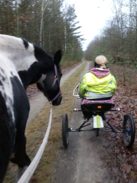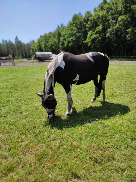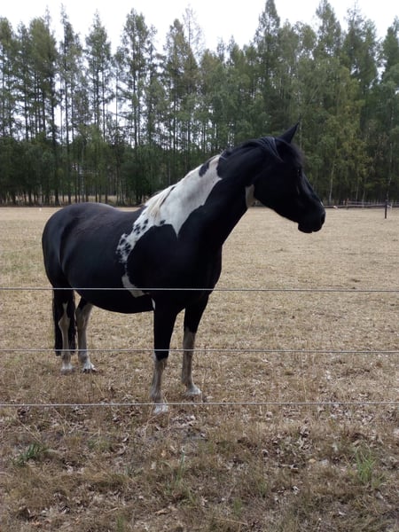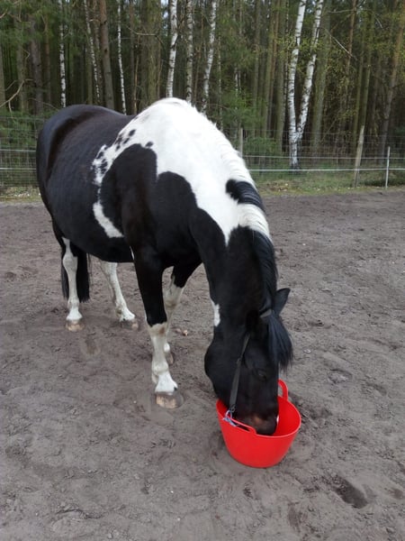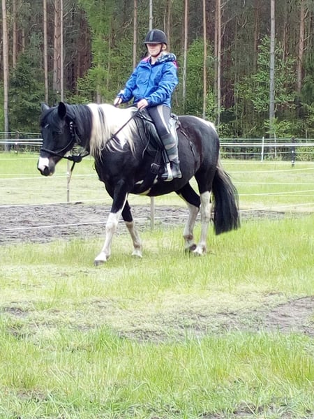 Unsere Pinto Stute sucht ein neues, liebevolles Zuhause. Hat ein Stockmaß von 1,54m. Wir haben Sie im Alter von 5 Jahren aus nicht optimaler Haltung übernommen. In den letzten Jahren haben wir viel Zeit und Herzblut investiert, um sie sowohl körperlich wieder aufzubauen als auch den Umgang mit dem Menschen zu festigen. Sie wurde von uns sozialisiert, aufgepäppelt und behutsam angefangen sie ausgebilden. Sie steht in unserem Offenstall mit zwei Wallachen zusammen, kennt es aber auch in der Box zu stehen. Sie ist sehr Menschenbezogen geworden und möchte immer dabei sein. Sie braucht volle Aufmerksamkeit, sonst fordert sie diese auch ein. Bodenarbeit macht ihr sehr viel Spaß, sie läuft auch frei hinter einem her. Lässt sich um die Vorhand, Hinterhand und seitwärts verschieben. Kann sich um sich selbst drehen. Hat keine Angst vor Planen, Fahnen, Hüpfetieren, Seifenblasen, Feuer, Motorsägen, etc. Lässt sich vom Boden in allen drei Grundgangarten longieren mit und ohne Sattel. Sie wurde im Schritt und Trab geritten auf dem Platz. Im Gelände war sie bisher nur zu zweit unterwegs. Sie wurde bei uns nur gebisslos gearbeitet. Sie steht jedoch noch nicht am Ende ihrer Ausbildung und ist daher kein Kinder oder Anfängerpony. Sie braucht eine feste Person mit etwas Erfahrung, die ihr Sicherheit gibt und sich auch durchsetzen kann. Charakterlich ist Sie eine sehr unerschrockene und coole Stute. Sie zeigt keine Ängste bei Trecker, Autos, LKWs, Fahrrädern, Motorrädern oder anderen unheimlichen Dingen. Im Umgang ist sie unkompliziert: Tierarzt – brav Hufschmied – problemlos Anhänger fahren – kennt sie und macht sie gut Aufgrund veränderter persönlicher Lebensumstände können wir ihr leider nicht mehr die Arbeit und Förderung bieten, die sie verdient. Sie wurde die letzte 1,5 Jahr nicht mehr aktiv gearbeitet. Daher haben wir uns schweren Herzens entschieden, für sie ein neues Zuhause zu finden. Wichtig: Sie wird nicht aus Zeitdruck verkauft. Für uns steht an erster Stelle, dass sie ein wirklich passendes und liebevolles Zuhause bekommt, in dem sie gefördert wird und ihr Potenzial entfalten kann. Bei ernsthaftem Interesse freuen wir uns über eine Nachricht. In einem Telefonat erzählen wir gerne mehr über Sie.