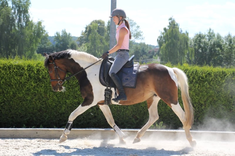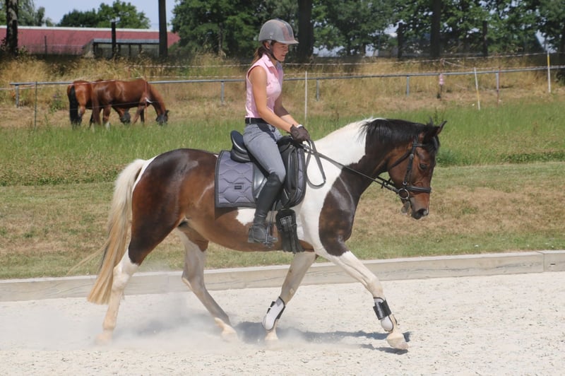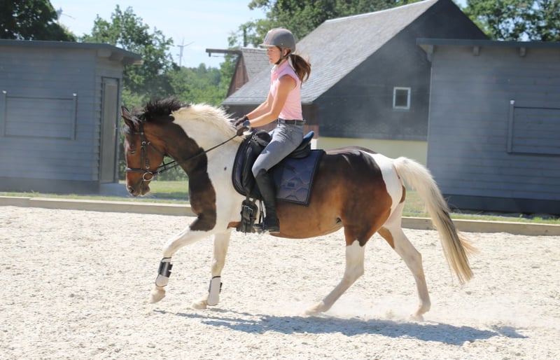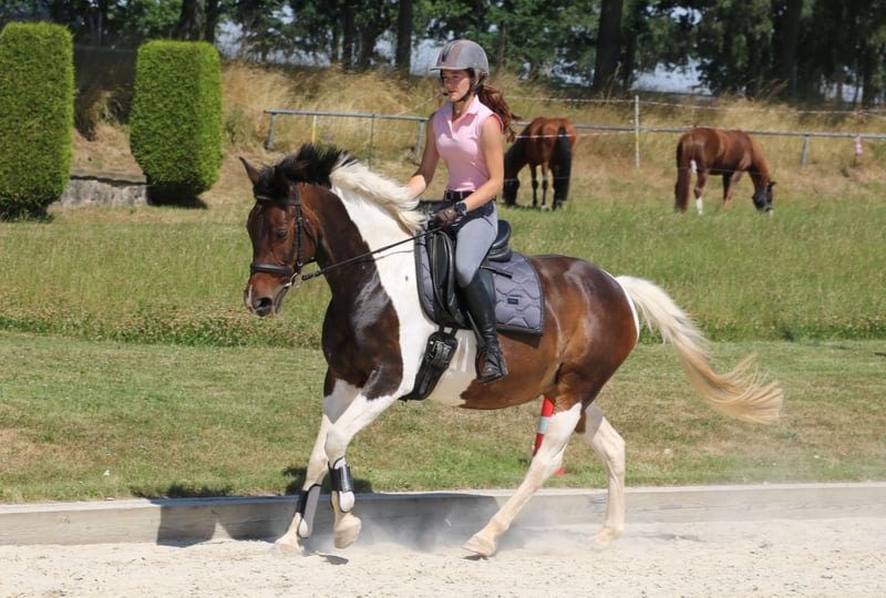 Vends cette jument pie de 2011 en tant que cheval de famille, pour le loisir, la reproduction ou un sport modéré. Intéressante également pour la reproduction. Elle a déjà eu deux poulains, qui ont remporté des notes de 8 en saut d'obstacles jusqu'au niveau A. Également montable et manipulable par des enfants. En raison de limitations de santé (dégénérescence des vertèbres au niveau du dos), elle est proposée à un prix bien inférieur à sa valeur réelle. Ferrée et habituée au déchargement. Sociable en troupeau.