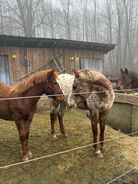 Zu verkaufen ist dieses wunderschöne Stutfohlen Sie ist am 30.04.2025 geboren und somit 9 Monate alt derzeit ist sie 1,35m ihre Eltern sind beide zwischen 1,50m und 1,55m. Bilder der Eltern habe ich vorliegen Sie ist sehr temperamentvoll und neugierig. Sobald man ihr Vertrauen gewonnen hat ist sie total verschmust dennoch braucht sie eine sichere und klare Hand weil sie auch einen kleinen Dickkopf hat. Dennoch hat sie viel potenzial und wird mal ein super tolles Pony womit man alles machen kann weil sie einfach total gerne Neues lernt Sie ist Halfterführig Kennt das putzen Hufe geben klappt vorne schon sehr gut hinten müsste man noch ein bisschen üben und dran bleiben dann hat sie es eigentlich total schnell drin und macht alles toll mit. Der erste Spaziergang wurde auch schon gemacht allerdings muss sie sich noch an Autos etc. gewöhnen aber ich glaube sie wird zu 100% ein Verlass Pferd welches mit einem durch dick und dünn geht und alles für seinen Besitzer/in gibt Sie geht auf den Hänger Sie war ebenfalls vor kurzem beim Hufschmied, ist frisch entwurmt und wurde geimpft. Ich wünsche mir für sie einen Offenstall oder eine Fohlenwiese sie wird in keine Boxenhaltung abgegeben! 1 neues Halfter mit strick und ihr Futter wird mitgegeben bei Bedarf Der Grund weswegen ich sie abgebe ist einfach das unser Charakter nicht zu 100% zusammenpasst und ich möchte das sie jemanden findet der ihr alles gibt was sie verdient KEINE Händler etc. Eine aku ist jederzeit möglich natürlich mit dem eigenen Tierarzt Platz vor Preis! Ich möchte für sie ein 5* zuhause deswegen kann man jederzeit über den Preis sprechen solange sie ein gutes Zuhause bekommt Bei fragen gerne melden ich beantworte gerne alles und auch ehrlich ! Ein vorbeikommen und anschauen ist jederzeit möglich um sie kennenzulernen