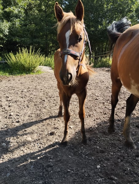 Verkaufe 1jährige Mix Stute, kurz gebaut, Fuchs farben