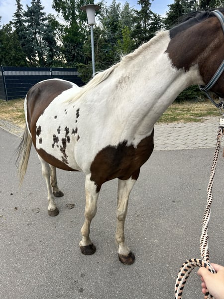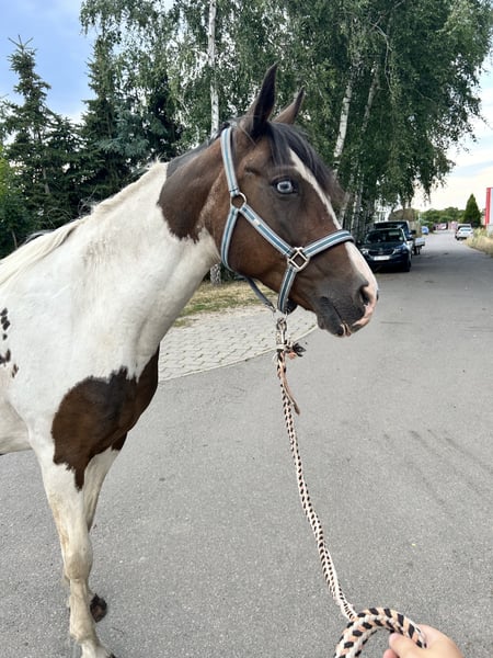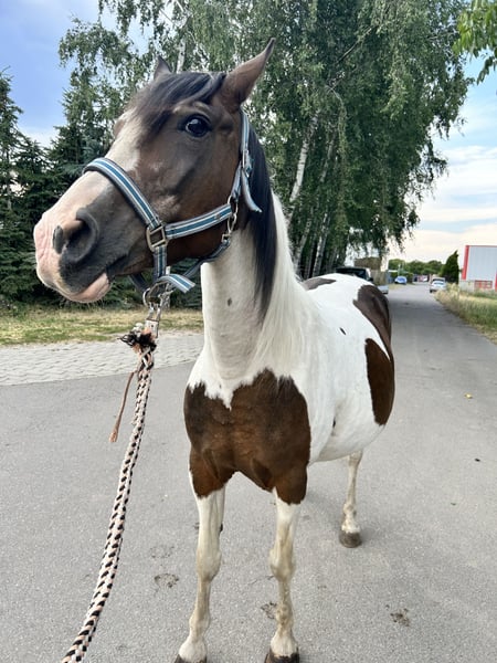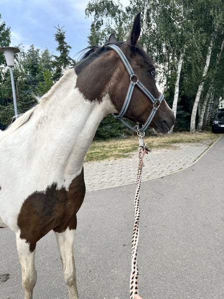 **Sales Advertisement: Beautiful Pinto Mare Looking for a New Home!** For sale is a charming Pinto mare, born in 2005. With a height of 148 cm, she is the ideal companion for experienced riders. This paint horse impresses with her striking and friendly appearance as well as her charming character. She is well-mannered, easy to handle, and is excellent for groundwork and various leisure activities. Our mare is healthy, regularly vaccinated, and dewormed. She has a balanced temperament. If you are looking for a loyal and loving companion, then this Pinto mare could be just right for you! If you are interested or would like more information, please feel free to contact us. We look forward to your inquiry!