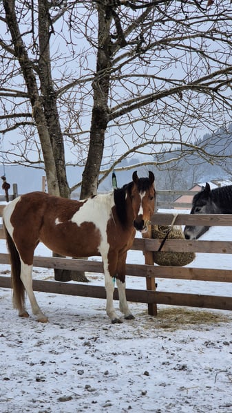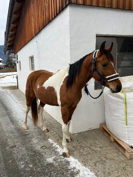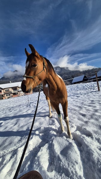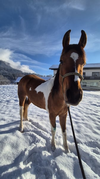 Maia ist eine im März 2023 geborene Pinto-Mix Stute mit viel Go Ca. 150cm groß & gesund Sie ist eine sehr aufgeweckte, freundliche Stute & brav händelbar. Die kleine ist noch roh, ist aber an Verkehr, Traktor & andere Tiere gewöhnt. Sie hat noch einiges zu lernen, zeigt sich aber stets bemüht- ist dem Alter entsprechend trotzdem gern mal abgelenkt. Sie bräuchte jemanden, der sich gut auskennt & bereit ist mit ihr einiges zu schaffen & sich viel zu beschäftigen. Ich denke Maia wäre total toll in der Vielseitigkeit. Springen, Western & Wanderreiten könnt ich sie mir auch sehr gut vorstellen. Nach einen persönlichen Kennenlernen von Pferd & Mensch können wir gerne weiteres besprechen