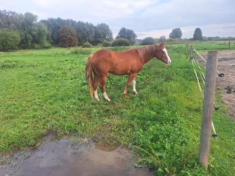Verkaufe junge Pait Horse Stute, geb. Juni 2023 Zum Verkauf steht ein bezauberndes Paint-Horse, geboren im Jahr 2023. Sie ist eine wunderschöne sorrel-overo Stute mit 3/4 Quarterblut. Ihre Mutter ist Reining ausgebildet und hat beim Reiten viel Spaß gemacht. Ihr Vater ist: NRHA Money Earner, Lawson Champion, Italian Open Paint Derby Champion, Multiple AQHA Open Champion, High Point Horse und Reserve Champion Ranch Riding. Die junge Stute ist gesund, freundlich im Umgang und eignet sich perfekt für Reit- oder Zuchtzwecke. Sie hat einen 5 Panel Test, alles N/N, nur GBED Einzelträger. Das spielt allerdings nur eine Rolle, wenn man mit ihr züchtet. Dazu muss sie mit einen GBED N/N Hengst gedeckt werden. Bei Interesse oder weiteren Fragen stehe ich Ihnen gerne zur Verfügung. Kontaktieren Sie mich für weitere Informationen und einen Besichtigungstermin!