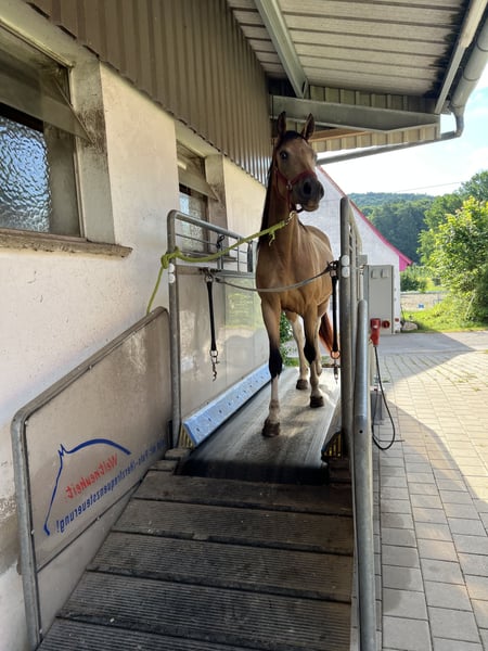 Als Fohlen hat sie die Goldprämie erhalten. Eingetragen als Braunisabell- Schecke, Aktuell ist sie 1,58 m, denke bisschen, was geht noch, aber keine große Sprünge mehr. Da wir sie ja selbst gezogen haben, ist sie familiär aufgewachsen. Sie ist kuschelbedürftig, kommt auf der Koppel zum schmusen und ist in der Herde akzeptiert. Die Herde besteht aus Wallach und Stuten, von drei Jahren bis 34. Aktuell war sie 24, sieben auf der Koppel. Je nach Wetterlage und im Winter im Stall mit Auslauf oder Koppel. Kennt Laufband und Hängerfahren. Sie besitzt auch eine OP Versicherung.