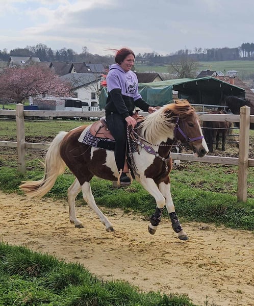 Scheckpony-Stute – brav im Umgang & angenehm zu reiten QUENIE Alter: ca. 6 Jahre Stockmaß: ca. 1,40 m Preis: 5400,- AKU vorhanden ✨ Beschreibung: Eine nette Scheckpony-Stute mit freundlichem Wesen. Im täglichen Umgang zeigt sie sich brav, unkompliziert und menschenbezogen. Unter dem Sattel ist sie angenehm zu reiten, aufmerksam und arbeitet gerne mit ihrem Reiter zusammen. Sie kennt auch die Reithalle und zeigt sich dort ebenfalls kooperativ. Ein sympathisches Pony, das sowohl im Freizeitbereich als auch für Reiter geeignet ist, die ein freundliches Pony suchen. Geeignet für: Freizeitreiter, Jugendliche oder kleinere Erwachsene, die ein unkompliziertes und nettes Pony suchen. Unsere Pferde werden regelmäßig: – entwurmt – vom Schmied betreut – osteopathisch kontrolliert Hofladen: Westernsättel, Trensen & weiteres Zubehör Transport und Equipment können auf Wunsch organisiert werden. Unser Service: ✅ 3 Monate Umtauschrecht ✅ Proberitt: 35 €, jedes weitere Pferd 25 € (bei Kauf am selben Tag angerechnet) Preisnachlass bei sofortiger Mitnahme oder Transport am gleichen Tag: • Preiskategorie 1: 100 € Rabatt • Preiskategorie 2 (ab 5.000 €): 250 € Rabatt ✅ Persönliche & ehrliche Beratung Anfragen bitte ausschließlich telefonisch: 0171 – 4001968 Erreichbar täglich von 8–20 Uhr ⚠️ Keine E-Mail oder WhatsApp ⚠️ Alle Angaben ohne Gewähr