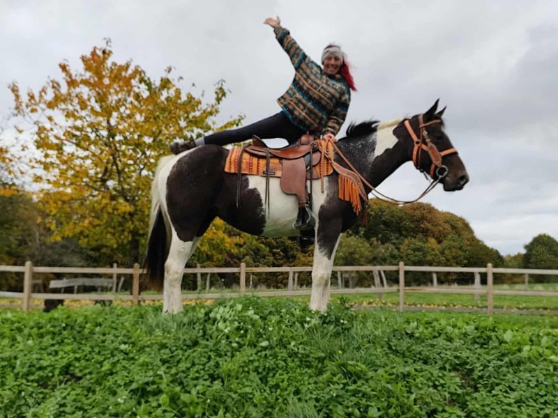 Freizeitpartner-Wanderreiten -Schul oder Familienpferd CALINE Alter: 7 Jahre Stockmaß: ca. 1,58 stm Preis: 6900 AKU: vorhanden E-Paß u. Microchip ✨ Über die Stute: Diese nette Pinto Stute hat ein freundliches Wesen. Sie ist brav im Umgang,unter dem Sattel brav und zeigt sich stets menschenbezogen und lernwillig. Mit ihrer charmanten Art ist sie eine tolle Freizeitpartnerin . Ihr Westernsattel und Zubehör kann für 1500,- mit ins neue Heim gebracht werden . Perfekt für: Pintostute die sowohl im Gelände als auch in der Freizeit überzeugt Kennt Herdenhaltung im Offenstall sowie auch Boxenhaltung . Unsere Pferde: – regelmäßig entwurmt – vom Schmied & Osteopathen betreut Hofladen: Westernsättel, Trensen, Zubehör ihr Westernzubehör kann gerne übernommen werden ca. 1500,. incl Markenwesternsattel . Transport & Zubehör auf Wunsch günstig organisiert Unser Service: ✅ 3 Monate Umtauschrecht ✅ Proberitt: 35 €, jedes weitere Pferd 25 € (beim Kauf am selben Tag angerechnet) ✅ 100 € Sofort-Rabatt bei Abholung/Transport am selben Tag ✅ Persönliche & ehrliche Beratung Anfragen bitte nur telefonisch: 0171 – 4001968 Täglich erreichbar von 8–20 Uhr ⚠️ Keine E-Mail oder WhatsApp ⚠️ Alle Angaben ohne Gewähr