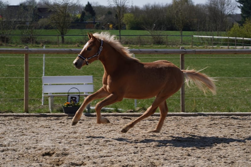 Verkaufe jungen Pinto-Hengst, geb. 31.05.2025, in wunderschönem Fuchsfell. Dieser vielversprechende Nachwuchshengst überzeugt durch sein freundliches Wesen und sein ausgeglichenes Temperament – ideal für die Freizeitgestaltung. Mit seiner Kombi - Mama Staatsprämien Haflingerstute mit durchweg prämierten Fohlen - Papa Pintohengst mit sehr guten Nachkommen und selber im Sport bis zur Klasse A erfolgreich und L fertig - haben wir hier ein tolles Gut aber sportlich gebautes Pony, dass auch für erwachsene Reiter ein toller Begleiter ist. Breaky besitzt ein volles Pintopapier und wäre mir Erbnachweis (sofern er bunt vererbt) auch für die Zucht nicht uninteressant. Der Hengst ist gut sozialisiert, leicht im Umgang und zeigt bereits erste Grundgangarten. Perfekt geeignet für alle, die ein vielseitiges Freizeitpferd mit besonderem Charme suchen. Er wurde bereits von Kindern geputzt und zeigt sich hier stets artig, dennoch ist es eben ein junger Hengst, der kein reines Kinderpony ist. Langfristig kann ich ihn mir als tolles Kinderlehrpony vorstellen. Ich kann mir Breaky sehr gut im gehobenen Freizeitbereich, als auch im Turnierberech vorstellen. Neuem gegenüber ist er vorsichtig aber offen und neugierig und hat bisher alles mit Bravour gemeistert. Er ist bereits Anhänger und Transporter gefahren und geht auf diese auch mit etwas Ruhe und Zeit selbstständig rauf. Da wir erst im Januar in den jetzigen Stall gezogen sind, bitte ich beim Kauf den Junghengst bis mindestens Herbst 2026 dort zu belassen, da auch sein Freund sonst alleine wäre. Bevorzugt sollten die Jungs bis Frühjahr 2027 zusammen bleiben. Einen Vollpensionsplatz hat er dort natürlich, falls jemand von weiter weg kommt. Bei Interesse stehe ich gerne für weitere Informationen und eine Besichtigung zur Verfügung.