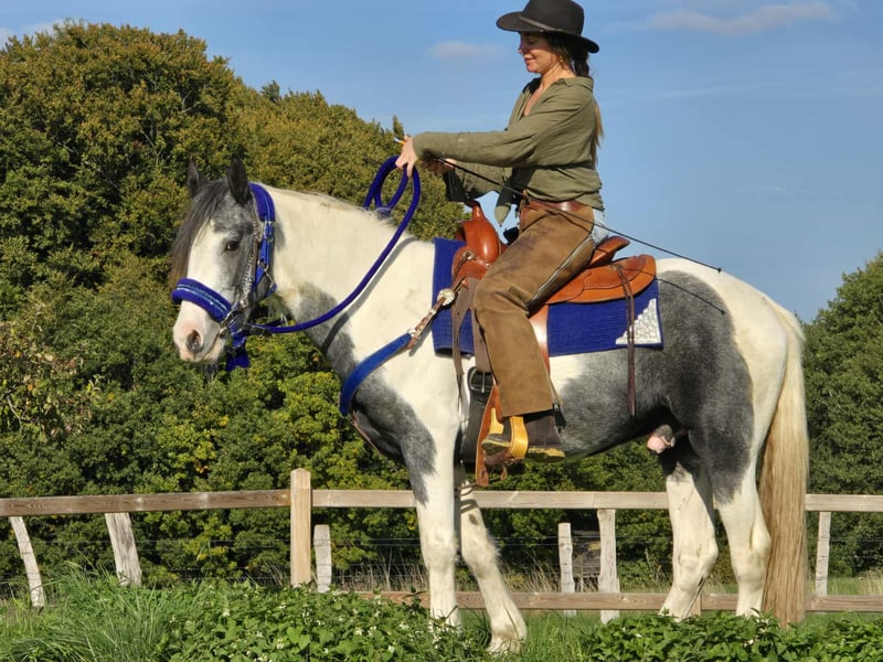 Traumtyp junger Pintowallach Toller Freizeitwallach in schöner Zeichnung . LUCKY ist 3,5J. *Geburtsjahr*: 2022 *Stockmaß*: 1,49m *Ausstattung*: E-Pass, Microchip und AKU vorhanden *Preis*: 5300.- € Er ist ein traumhafter, süßer Pintowallach mit einem ausgeglichenen Wesen. Er eignet sich perfekt für das Gelände-, Wanderreiten und den Freizeitbereich – ob Englisch oder Western . - Offenstall- und Herdenhaltung gewohnt, aber auch in der Box kein Problem - Absolut zuverlässig und entspannt im Umgang - Ein vielseitiger Partner für Reiter jeden Anspruchs ### *Zusätzliche Informationen:* - Zubehör und Transport können organisiert werden. - Unser Hofladen bietet eine kleine Auswahl an gebrauchten Westernsätteln. - *Ratenzahlung ist nicht möglich.* ### *Service für Kunden:* - Jeder Kunde erhält ein vertraglich festgesetztes *Umtauschrecht von drei Monaten.* - Ein Proberitt bei uns ist möglich, damit Sie Ihr Traumpferd kennenlernen können. Für 35 Euro können Sie reiten, sich ihn vorreiten lassen, spazieren gehen oder mehr. Auf Wunsch können Sie auch ein zweites Pferd testen. Dieser Betrag wird beim Kauf eines Pferdes am gleichen Tag selbstverständlich verrechnet. ### *Besonderheiten:* - Bei sofortiger Abholung mit Pferdeanhänger erhalten Sie *einen Nachlass von 100 Euro.* - Wir absolvieren den Verkauf mit einem transparenten Proberitt, um sicherzustellen, dass es das richtige Pferd für Sie ist. ### *Rechtliches:* - Wir sind alleinige und uneingeschränkte Eigentümer der Bilder; die Bildrechte liegen bei uns. *Fremdverwendung der Bilder ist verboten.* - Bitte beachten Sie, dass es sich um ein lebendes Pferd handelt. Unsere Angaben basieren auf den Eindrücken des Betreuers und stellen keine zugesicherten Eigenschaften dar. - Anzeigen werden sofort gelöscht, sobald die Pferde verkauft sind. *Interesse?* Rufen Sie uns gerne an unter *0171-4001968* (täglich von 8–20 Uhr). *Bitte keine Mails oder WhatsApp, nur Anrufe!*
