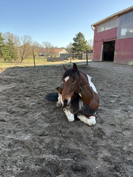Unser Herzi sucht ein 5 Sterne Zuhause. Da ich leider aus gesundheitlichen Gründen meinerseits mich von ihm trennen muss. Herzi ist super lieb, hat aber einen Sturkopf, der gerne durchkommt - er hört aber super auf seinen Namen. Er kam mit 4 zu uns und wir haben ihn Freizeit mäßig Voltigieren beigebracht. Springen ist er bei uns nur beim Freispringen gegangen und Gelände geht er zu 2. ohne Probleme - alleine braucht er Sicherheit, an der Hand aber kein Problem. Er ist nicht schreckhaft, spielt gerne und kommt mit allen Pferden gut aus. Er wird an keinen Reitbetrieb abgegeben. Momentan steht er im Offenstall und wir würden uns eine Offenstall Haltung wünschen. Er wird weit unter seinem Wert verkauft. Er hat ein kleines Problem mit dem Sprunggelenk, aber dies ist mit dem Tierarzt abgesprochen und er ist normal belastbar. Kein Anfänger Pferd