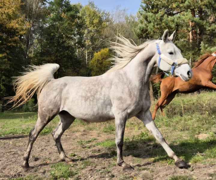 For sale is a charming mare imported from France, with excellent pedigree. She has competed in regional endurance rides of 40 and 80 km with very good results. I purchased her with the intention of competing in such endurance events, but my knee no longer allows it, so perhaps someone with similar ambitions will find her suitable. She is very well-behaved in her surroundings, with a strong, compact build. Under saddle, she is better suited for an experienced rider; she can be a bit electric at times, but she doesn’t buck or try to unseat the rider. Once you get to know her, she’s really enjoyable to ride. She is hardy, accustomed to traffic, and has participated in historical reenactments. She is 9 years old. I recommend her—she’s a horse that forms a strong bond with her owner. She has experience with cross-country jumping and jumps very confidently.