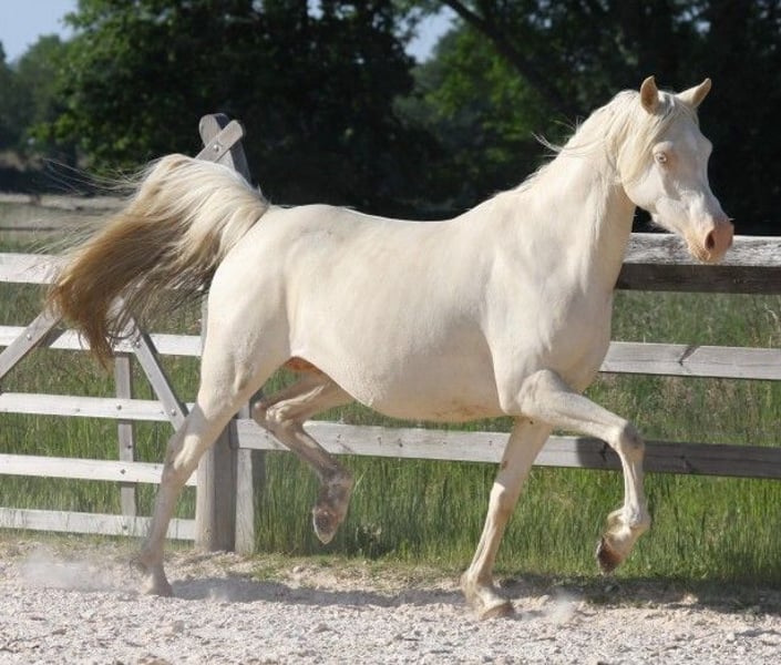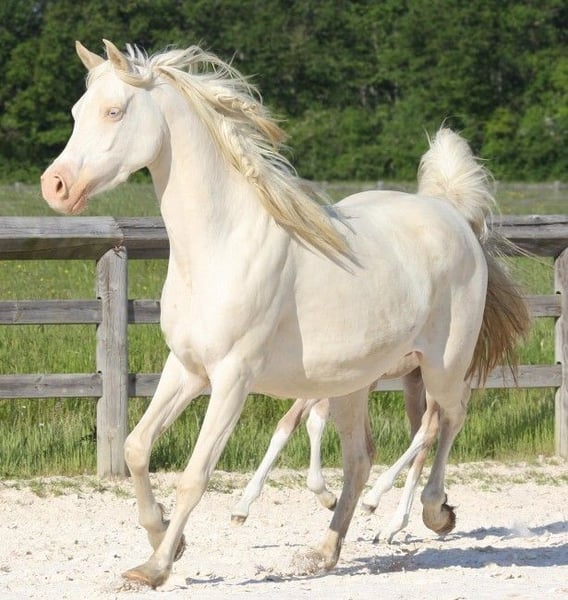FRANCE , à voir superbe jument demi sang arabe 75 % ar de robe creme , poulinière fabuleuse , top origines , non débourrée mais pourrait l etre , très facile , origines performer en cso , endurance ..photos son père palomino , photos de sa production disponible LOCATED FRANCE ,fabulous part bred cremello arab mare 75% ar , very good broodmare her foals will be 100 % color , unbroken , but could be easily, very nice mare palomino in photo her father . photos and videos of her foals available