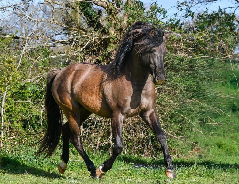 Hallo ‼️ PREISREDUZIERUNG ‼️ Massaï steht zum Verkauf Er ist ein DSA mit vollständigem Papier, 75 % Araber, 25 % Criollo. Vater: Faren des Brumières PSAR, Mutter: Fadeto de la Madone DSAR, beide Nachkommen von Narcisse de Suleiman. Farbe: Grullo (schwarz mit einem Hauch von Grau). Genetisch frei von Erbkrankheiten. Unkastriert, dieses Jahr zur Zucht genutzt. Geboren im April 2022. Größe ca. 1,53/1,55 m. Transportiert wird er im Van oder LKW. Sehr gut im Umgang. Entwurmt, wurde nie vernachlässigt, was Kenner wissen. Respektiert Weidezäune. Pflegeleicht und unkompliziert im Unterhalt. Kastration möglich. Preis unter 6.000 €. Sichtbar im Département Morbihan, angrenzend an das Département Loire-Atlantique. Region Herbignac / Arzal.