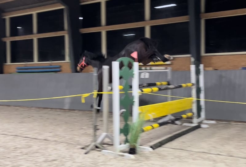 Super fokuste merrie. Uitstekende technische vrijspringen. Ze is in september 2022 onder het zadel gebracht in drie gangen. Probleemloos in het terrein. Ze heeft een asymmetrische achterhand. Linkeroog met uveïtis. Eenvoudig te dekken - top karakter! Ze heeft nog een hengstveulen aan de voet, geboren bij Up van’t Paradijs op 20-07-2025 ELITE ✅ Ik verkoop meerdere paarden wegens tijdgebrek. Meer video's en foto's stuur ik graag via WhatsApp.