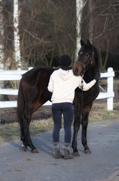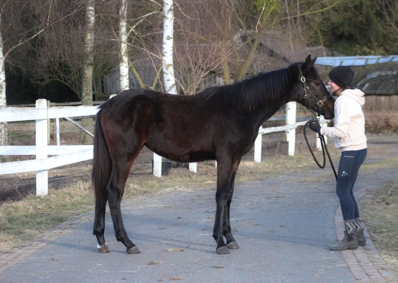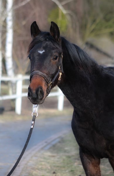 Piękna klaczka, w kolorze czekoladowym, poszukuje nowego domu. Ten koń ma potencjał na przyszłość jako koń do skoków, terenówki, ujeżdżenia lub wszechstronnego wyszkolenia, ze względu na swoje pochodzenie i doskonały ruch. Ojcem Leblanc jest leopardzasty ogier Perfekt Love (Love Affair # Treflowa Dama), który odniósł sukcesy w skokach przez przeszkody – ostatnie zdjęcie! Love Affair (poziom 150 cm) to koń najwyższej klasy rasy Hanoverian, urodzony w Niemczech, z doskonałym rodowodem zarówno w skokach, jak i ujeżdżeniu. Jego ojcem jest angielski czystej krwi Lauries Crusador, znany z produkcji koni o świetnym ruchu i predyspozycjach sportowych, natomiast jego matka pochodzi z linii produkującej zarówno konie do skoków, jak i ujeżdżenia. Potomstwo Love Affair zdobyło liczne tytuły na konkursach w Polsce, zarówno wśród źrebiąt, jak i na Mistrzostwach Polski Młodych Koni w ujeżdżeniu. Charakteryzują się harmonijną budową, pięknem, fenomenalnym ruchem i doskonałym temperamentem, co czyni je idealnymi kandydatami zarówno do skoków, jak i ujeżdżenia. Love Affair to ogier, którego geny gwarantują potencjał, urodę i temperament, a jego potomstwo kontynuuje tradycję hodowli koni wyróżniających się zarówno pod względem sportowym, jak i charakteru. Matka pochodzi z najlepszych linii anglo-arabskich (Efekt (poziom 145 cm) - Lozanna / Huzar / Jalenny AA). Ogier: Huzar – wice-mistrz Polski koni 4-letnich w skokach przez przeszkody, 3. miejsce na Mistrzostwach Polski 4-letnich w skokach, 7. miejsce CIC* Strzegom (2010), 5. miejsce CIC* Jaroszówka (2011), 6. miejsce CIC** Sopot (2011), uczestnik Mistrzostw Świata Młodych Koni w Le Lion d’Angers (2010), 2. miejsce CIC* Biały Bór (2013), 5. miejsce CCI** Sopot (2014), 10. miejsce CIC*** Baborówko (2015), brązowy medal na Mistrzostwach Polski Seniorów CIC*** Sopot (2015). Klacz jest niezwykle poprawna, z prostymi, mocnymi nogami i prawidłowymi kopytami. Ma piękny, bardzo przyjazny dla człowieka charakter. Wychowana na rozległych pastwiskach, codziennie ćwiczy w paddocku razem z grupą młodych koni. Jest karmiona wysokiej jakości paszą. Jeśli zostanie końcem hodowlanym, może wydać potomstwo leopardzaste. Bardzo dobrze ułożona, chodzi na lonży, jest zaszczepiona, odrobaczona i zadbana. Odważna, oswojona z psami, kotami, traktorami itp. Przybliżony docelowy wzrost: około 166-168 cm. Paszport konia sportowego polskiej hodowli. Znajduje się w Polsce, blisko granicy niemieckiej. Możliwość zorganizowania transportu. WhatsApp +48 513 179 245