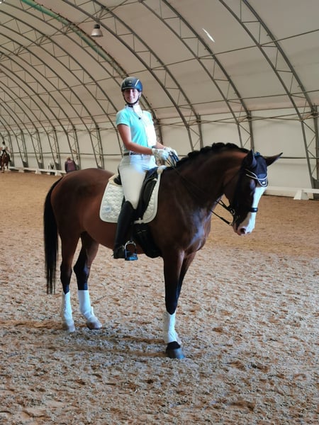 Puppe es segura en el campo, apta para principiantes y se ofrece como una compradora, debido a una lesión, para paseos tranquilos en un buen hogar. No se le nota su edad, es compatible con otros caballos y desea un hogar donde pueda hacer un poco de ejercicio y ser cuidada.