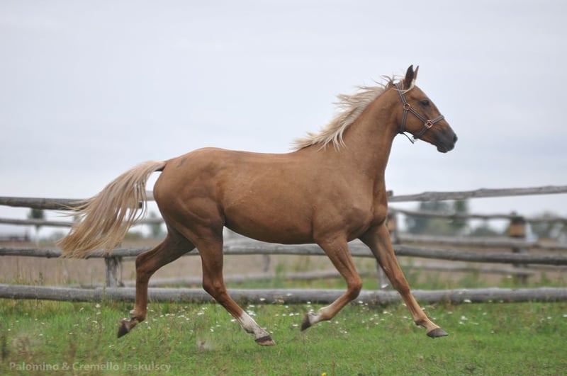 Special mare with sport pedigree and golden color. A real eyecatcher. She is now about 160cm (almost 3 years old). Sire is 172cm and dam is 165cm. Full brother sold to Belgium on Auction as a weaning. Prospect to sport and breeding. Other horses available: https://sites.google.com/grupadrewnex.pl/palominojaskulscy Facebook: https://www.facebook.com/PalominoJaskulscy