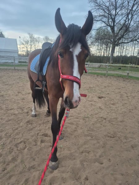 Piękna 3,5-letnia klacz o wzroście 170 cm w kłębie (i wciąż rośnie). Ma doskonałe pochodzenie z udziałem Landosa (Holsztyn) i So in Love (KWPN) – co czyni ją idealną kandydatką do sportu, szczególnie w skokach przez przeszkody, lub jako wysokiej jakości klacz hodowlana. Filmik ze skokami: https://www.youtube.com/shorts/XOFf0K5rhAc Jest już osiodłana i jeździ ładnie we wszystkich trzech chodach, gotowa do kontynuacji edukacji. Ma fantastyczny charakter: spokojna, inteligentna, czuła i chętna do pracy zarówno w stajni, jak i pod siodłem. Łatwa w obsłudze, dobrze podróżuje i ma dobre maniery pod siodłem. Regularnie podkuwana, odrobaczana, szczepiona i miała robione zęby. Bez wad – nie zgrzyta, nie kręci się ani nie ssie powietrza. W pełni zdrowa – brak problemów z oddychaniem lub kulawizną. Miała bardzo drobną kontuzję tylnej nogi, potwierdzoną ultrasonografem w sierpniu 2025 roku. Nigdy nie wykazywała kulawizny, pozostawała pod ciągłą opieką weterynaryjną i obecnie wraca do pracy po krótkim okresie odpoczynku. To jest szczera sprzedaż z powodów osobistych i ważne jest, aby trafiła do odpowiedzialnego i troskliwego domu. Jeśli nie odbiorę telefonu, proszę o wiadomość SMS lub e-mail, a ja się skontaktuję.