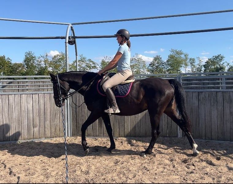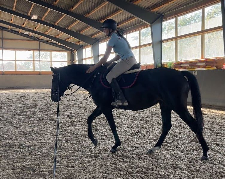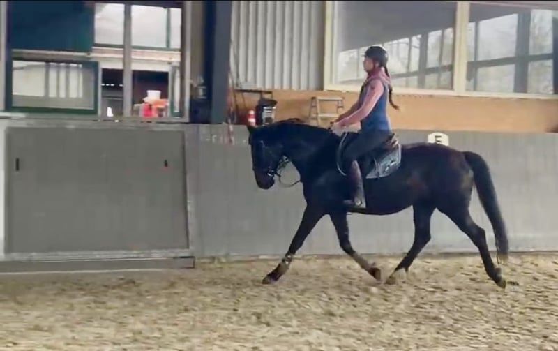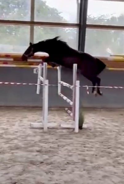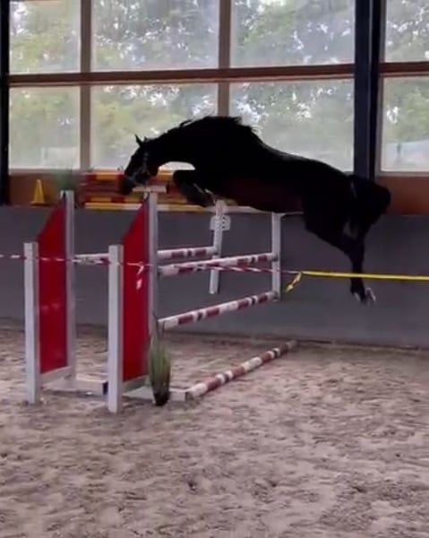 Super Stute mit top Bewegung und Spring Quälitat. Stute hat akzeptiert Reiter sofort und ist grade angeritten. Top Charakter ✅ Gesund- nicht lahm. Gute starke Körperbau und trotzdem schön leicht in Bewegung 🥰 Stute zur Zeit ist ca 160cm- wird wachsen bis ca 165cm. Letzte Bild ist die Mutter (M in dressure und M** ausgebildet im Springen und hat zum Zucht gegangen). Vater Opium springt in USA 150cm. Mehr Infos, Bilde oder Videos per Whats App.
