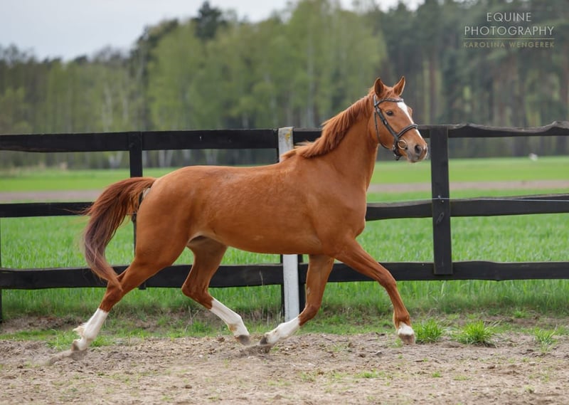 Carmen ist eine typische Einzugsstute. Wenn jemand sie liebt, gibt sie ihr Herz vollständig und bereitet viel Freude durch die gemeinsame Zeit. Ich weiß das, weil ich sie als Fohlen gekauft habe und garantieren kann, dass sie die treueste Pferd im Herde ist, das immer herbeieilt, um sich zu begrüßen, sobald sie mich in der Nähe sieht. Leider ist sie gegenüber Fremden nicht vertrauensvoll. Das liegt nicht an ihren Erfahrungen, denn sie war immer bei mir und wurde nie schlecht behandelt, sondern an ihrem elektrisierenden Temperament. Man muss sich um sie bemühen, um ihre volle Hingabe und Gehorsam zu gewinnen. Sie ist klein und eignet sich auch für ein Mädchen, das gerade mit dem Turniersport anfängt, vorausgesetzt, man engagiert sich auf der anderen Seite. Sie hat sich bei uns sehr mit einem 11-jährigen Mädchen angefreundet, und in dieser Beziehung ist sie das perfekte Pferd. Für eine Reitschule ist sie absolut nicht geeignet – daher danke ich für entsprechende Angebote. Für diesen Zweck werde ich sie nicht verkaufen. Außerdem ist sie ein gesundes Pferd. Nichts kann ihr je zusetzen. Als Dreijährige hat sie mehrere Monate professionell trainiert und war bereits eingeritten, doch aufgrund ihres Charakters biete ich sie nicht als eingerittenes Pferd an, da man sicherlich wieder mit ihr arbeiten muss. Sie hat einen schönen Bewegungsablauf, Temperament, Schnelligkeit, Springvermögen und volle Vitalität, weshalb es sinnvoll wäre, die Arbeit mit ihr wieder aufzunehmen. Sie ist auch als Mutter getestet. Sie wurde mühelos tragend und hat ihr Fohlen vorbildlich aufgezogen. In Kombination mit einem Pony hat sie ein wunderschönes D-Gruppe-Fohlen geboren. Seit zwei Jahren lebt sie mit uns auf der Weide in der Herde. In der Herde neigt sie dazu, zu dominieren, wenn keine älteren und größeren Stuten dabei sind ;) Wenn jedoch andere Pferde anwesend sind, ist sie gehorsam wie ein Lamm. Sie ist ein kluges Tier.