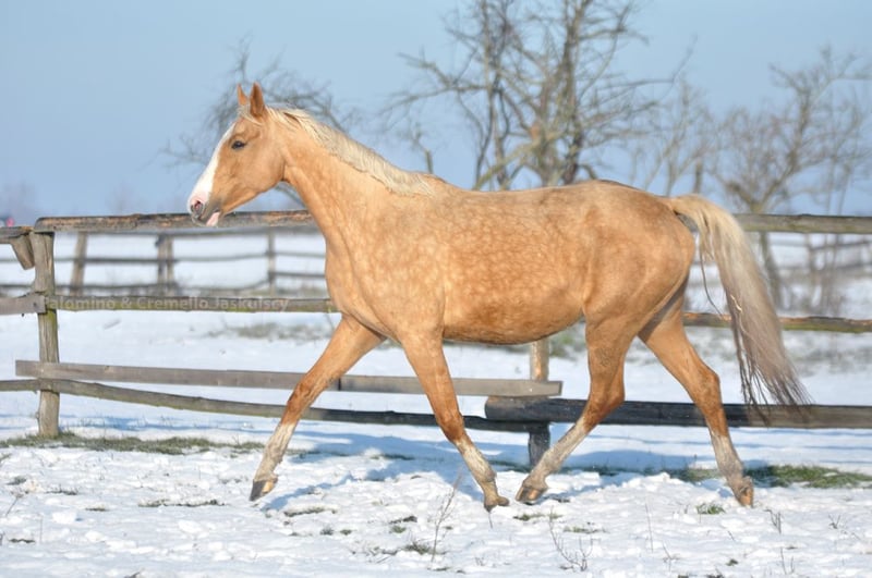 Consider to sell: Great young palomino mare with a lot of white. She was ridden as 3,5 years old and then gave us 2 foals in breeding. Not in foal due 2026. She can be for breeding or riding. Last photos dam, sire and 2 her foals. Directly from breeder. Pedigree with dressage and jumping horses : https://www.horsetelex.com/horses/pedigree/2349047/cinderella-gold-j Other horses: https://sites.google.com/grupadrewnex.pl/palominojaskulscy Facebook: https://www.facebook.com/PalominoJaskulscy