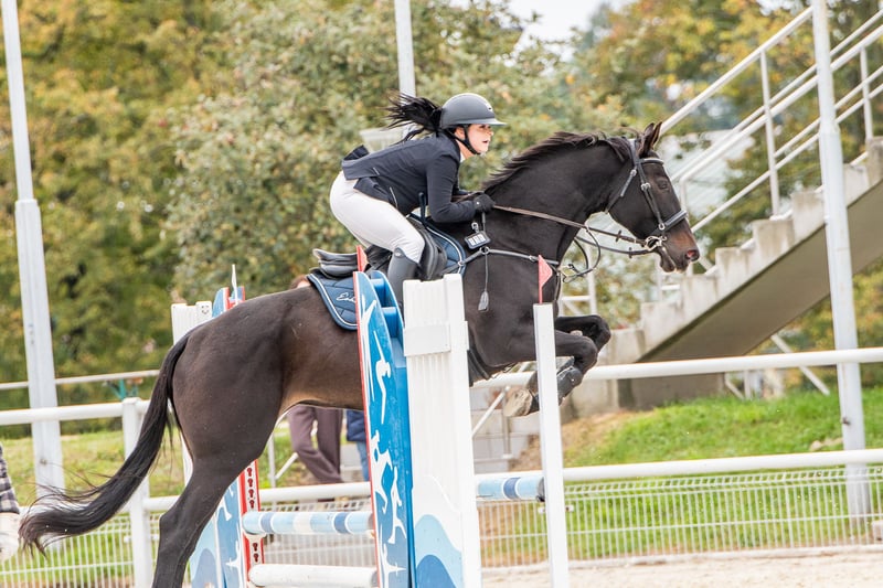 For sale: a 6-year-old mare, standing at 165 cm at the withers. This horse is suitable for a riding child, as she is gentle and well-behaved—no biting, kicking, bucking, or rearing. She is easy to keep in a herd and gets along well with other horses. She enjoys jumping, is easy to ride, and is not spooky or nervous. She loves human contact and demonstrates significant strength, especially in jumping, where she is quick and agile. The mare was introduced to riding later in life but has been trained up to 100 cm, with individual jumps reaching 110 cm, and has the potential for much higher. She has participated in training outings and has successfully competed in her first competitions. She is comfortable riding alone or in a group, making her suitable for eventing (WKKW). She is resilient and in continuous training. She has excellent pedigree: her sire, Roland, is a son of Ramiro’s II / Ramiro Z, and her dam, Rakija, is by Efez / Czuwaj. The horse has shown no health issues and holds a clean TUV (health certificate) valid until December 2024.