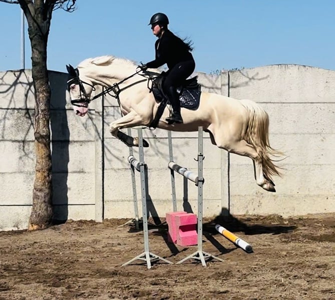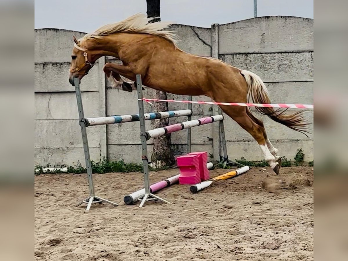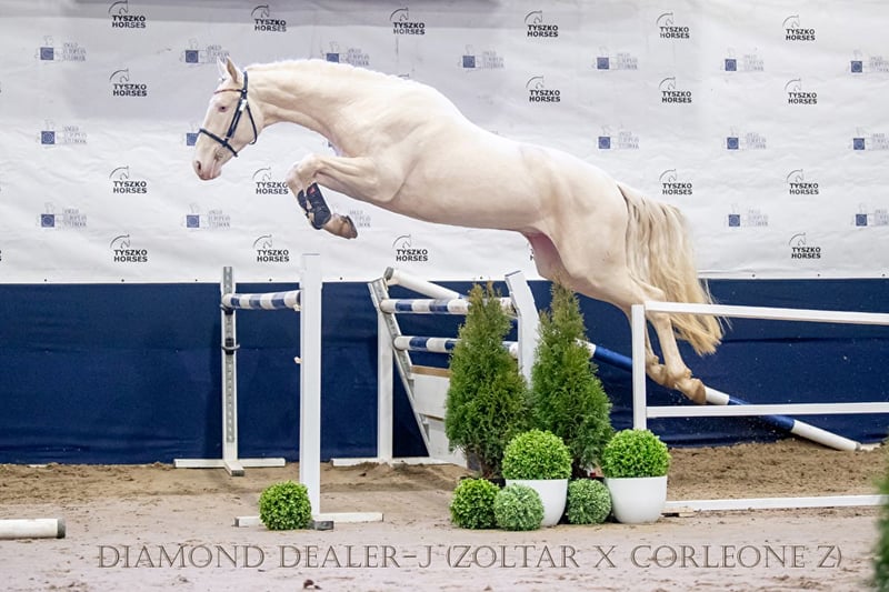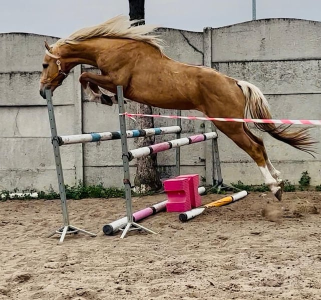 A beautiful, eye-catching 3-yo stallion (born 2022) polish sporthorse breed (no spanish lines). Very good movement and jumping technique - a promising sport and breeding prospect. Full brother to licensed stallion Diamond Dealer-J (OgierZoltar x Corleone Z) https://www.colored-stallions.com/diamond-dealer-j Sire Zoltar: https://www.colored-stallions.com/zoltar His mother Dita-P, is a daughter of the stallion Corleone Z, whose offspring perform very well in both disciplines: dressage and jumping. Dita-P's full sister mare Dirty Lady-P participated in the World Championships for 5-year-olds in dressage. Last photos dam and sire and 2 full brothers. Movies can be send on Whatsapp Also other palomino and cremello horses available. https://sites.google.com/grupadrewnex.pl/palominojaskulscy/strona-g%C5%82%C3%B3wna/for-sale-foals-horses Facebook @PalominoJaskulscy Located south-west Poland 55-093 Piecowice
