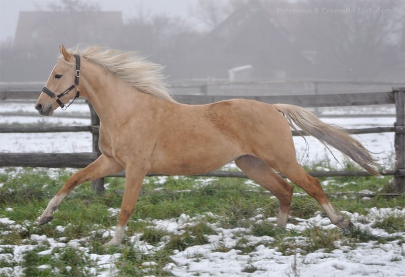 Ein wunderschöner, auffälliger 3-jähriger Hengst (geboren 2022) der polnischen Sportpferderasse (keine spanischen Linien). Sehr guter Bewegungsablauf und Springtechnik – vielversprechender Sport- und Zuchtvorschlag. Vollbruder des lizenzierten Hengstes Diamond Dealer-J (OgierZoltar x Corleone Z) https://www.colored-stallions.com/diamond-dealer-j Vater Zoltar: https://www.colored-stallions.com/zoltar Seine Mutter Dita-P ist eine Tochter des Hengstes Corleone Z, dessen Nachkommen in beiden Disziplinen – Dressur und Springen – sehr erfolgreich sind. Die Vollschwester Dita-P, die Stute Dirty Lady-P, nahm an den Weltmeisterschaften für 5-Jährige im Dressurteil teil. Letzte Fotos von Mutter, Vater und zwei Vollbrüdern. Videos können per WhatsApp gesendet werden. Weitere Palomino- und Cremello-Pferde sind ebenfalls verfügbar. https://sites.google.com/grupadrewnex.pl/palominojaskulscy/strona-g%C5%82%C3%B3wna/for-sale-foals-horses Facebook @PalominoJaskulscy Standort: Südwestpolen 55-093 Piecowice
