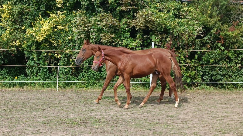 Colt from the mare Pasjonata (Pasja - Viscount) and the stallion stationed at Wechta, Vincento des Forets. Color: chestnut Date of birth: March 21, 2025 Height: mother 165 cm, father 170 cm - expected to be a tall horse Character: friendly, calm, picks up his legs, walks on a lead behind his mother, loves cuddles Breed: Polish Sport Horse https://www.horsetelex.com/horses/pedigree/2665853/pasqualo-des-forets Father: Vincento des Forets (Calvaro Z x Quidam de Revel). This stallion is proven in international sport up to the 1.45 m level, possessing an exceptional, gentle character, very rideable, endowed with above-average jumping talent, and finally a great-grandson of the outstanding mare Qerly Chin. Stallion proven in international sport up to the 1.45 m level Finalist of the French Young Horse Championships Mother Sitelle de la Pomme is a half-sister to the outstanding sport horse Querlybet Hero Grandmother is the exceptional Narcotique de Muze II Close relation to horses such as Million Dollar, Vagabond de la Pomme Great-grandson of the outstanding sport and breeding mare Qerly Chin. Mother: did not compete in equestrian events, however, her mother Pasja (Carry son - Piroga/Czynel xx) competed in 3* eventing and is also the Polish Champion of Young Horses in the 4-year-old category. We invite you to reserve and view the colt in Lusowo near Poznań. Selling only because I do not have space for the colt.