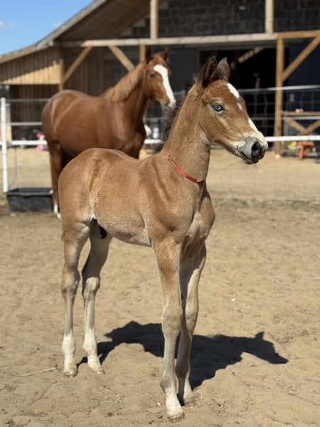 Zum Verkauf steht ein junger, vielversprechender Hengst der Rasse Polski Koń Sportowy, geboren im Jahr 2026. Dieser Fuchs hat ein ausgezeichnetes Springtalent sowie einen ausgeprägten Charakter, was ihn zum idealen Kandidaten für ambitionierte Reiter und Trainer macht, die junge Talente fördern möchten. Der Hengst ist gut gebaut, mit einer harmonischen Statur und kräftigen Beinen, was Stabilität und Sicherheit bei Training und Turnieren gewährleistet. Seine natürlichen Springfähigkeiten lassen ihn im Parcours hervorragend abschneiden, und sein junges Alter eröffnet vielfältige Entwicklungsmöglichkeiten in der Zukunft. Freundlich und gut sozialisiert ist der Pferd gut ausbalanciert und meistert die täglichen Anforderungen problemlos. Eine großartige Investition für diejenigen, die auf der Suche nach einem zukunftsträchtigen Sportpferd sind, das bereit ist, sich weiter zu entwickeln und an Wettkämpfen teilzunehmen. Für weitere Informationen und eine Besichtigung stehe ich gern zur Verfügung.