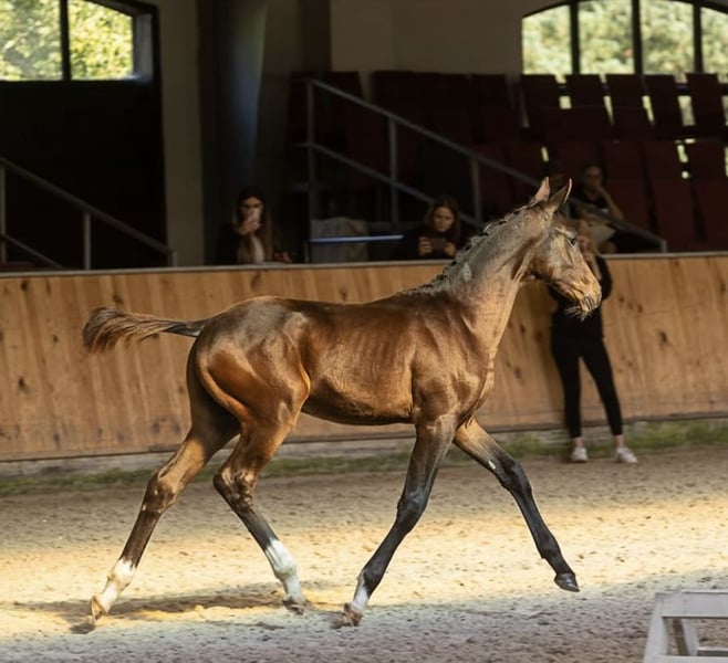 SAPPHIRE (ur. 09.05.2025 r.) rasy polski koń sportowy – źrebię o wyjątkowo dynamicznym ruchu oraz pięknej, harmonijnej budowie. Pochodzenie: —> Ojciec: MOSITO VAN HET HELLEHOF —>Matka: SASANKA po DOMINATOR 2000Z