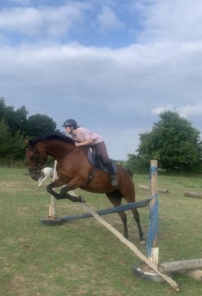 Schicker braver Allrounder wegen Bestandsverkleinerung zu verkaufen. Absolut brav in jeder Situation, immer Händelbar, ohne Unarten! Sehr lernbegierig, immer Leistungsbereit. Schleifensammler auf Turnier. Springt bis A, jedoch nicht auf Turnier soweit vorgestellt. A Dressur fertig, geht brav und korrekt Seitengänge, Außengalopp stabil, ruhig und gefestigt…. Kann problemlos bis L Dressur gefördert werden. Arbeitet immer mit Feuereifer mit. Springt anständig und blockiert nicht, hat hier aber Go, macht ihm einfach Mega Spaß und ist aber trotzdem Händelbar. Hört auch hervorragend auf Stimme. Sehr brav im Gelände. Lernt gerne Kunststücke vom Boden aus. Planen, Wedelvorhang usw auch kein Problem. Lässt sich problemlos ohne Sattel reiten und Händeln. Kurz gesagt, ein wirklicher Schatz, der mit seinem Reiter durch Dick und Dünn geht. Stets ehrlich und absolut klar im Kopf. Gerne auch mal ein kleiner Träumer im Gelände, hier muss er einfach mal die Schmetterlinge in ruhe ansehen und findet das einfach nur prima 🤗 er liebt sein Leben und die Welt 🐣 Fütterungstechnisch vollkommen unkompliziert. Viele Heu reicht ihm aus, Kraftfutter verträgt er natürlich auch, aber davon benötigt er eigentlich nur etwas, wenn er ganz viel „arbeitet“ und dann nur eine Handvoll. Er ist natürlich regelmäßig geimpft, entwurmt und hat Zähchenkontrolle bekommen. Brav beim TA, sowie beim Schmied. Brav im Hänger und lässt sich auch anständig verladen. Probereiten ist kein Problem, aber hier wird eine Reitgebühr von 30.- Euro verlangt, da wir nur potentielle Interessenten suchen, zum kostenlosen Reiten daher nicht geeignet. Sollte ein Kauf zustande kommen, wird das natürlich dann abgezogen. Ich bitte um Verständnis. Der kleine Prinz hat nur das allerbeste verdient, daher gilt, Platz vor Preis. „Verschenkt“ wird er natürlich trotzdem nicht 😅 Es handelt sich hier auch nicht um einen Notverkauf!