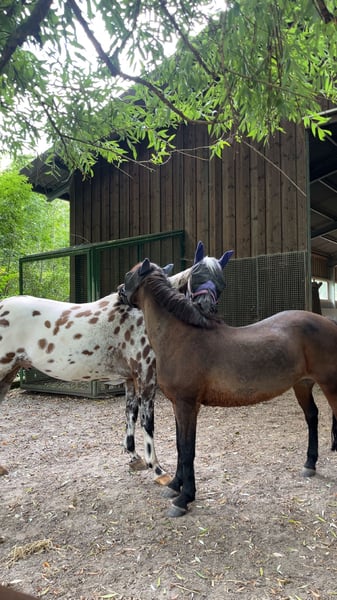 Merlin est un cheval de dressage polonais de 13 ans. Il est très sensible et peut rapidement paniquer dans des situations agitées. Il ne donne pas de coups de pied, ne mord pas, ne dérobe pas, et souhaite toujours bien faire, mais il a besoin d'une personne qui lui apporte calme et patience, et qui s'occupe de lui. Jusqu’à présent, il a toujours dû être sédaté lors du ferrage. Il se déplace seul ou en paire attelée à un carrosse, et il est parfois monté, ce qu'il accepte généralement très bien. Nous le vendons car malheureusement, nous n'avons pas assez de temps à lui consacrer.