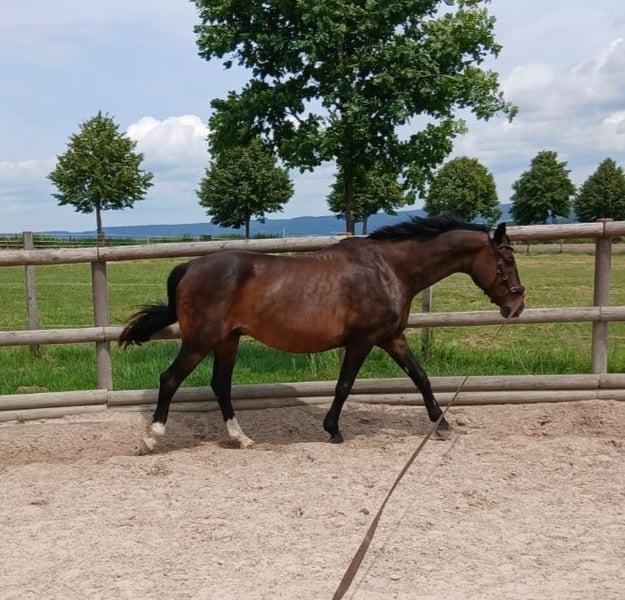 Aufgrund persönlicher Umstände steht mein Warmblut Wallach Jack zum Verkauf. *2010 (15 Jahre) 2014 aus Polen importiert Stockmaß ca. 160cm Equidenpass vorhanden Geimpft und entwurmt Schmiede- und Verladefromm Er hat ein paar gesundheitliche Baustellen die nicht verschwiegen werden sollen, er wird daher ausdrücklich als bedingt reitbarer Beisteller abgegeben, auch wenn er grundsätzlich in allen 3 GGA reitbar ist. Aktuell hat Jack eine starke Mauke am linken Hinterbein, diese ist zwar schon in Behandlung, bedarf aber definitiv noch weiterer Pflege und Medikation. Durch lange Pausen und nur unregelmäßige Arbeit in den letzten 4 Jahren würde ich, bevor er wieder "richtig" gearbeitet wird, auf jeden Fall empfehlen nochmal einen Zahnarzt / Osteopathen drüber schauen lassen. Ausserdem hat er einen Spatbefund in beiden Sprunggelenken, es fällt ihm also schwer die Hinterhufe zu geben / abzusetzen und er braucht (gerade im Winter) etwas Zeit um sich einzulaufen. Ist er ausreichend aufgewärmt und geht fleißig vorwärts, macht sich das in seinem Bewegungsablauf jedoch weder unter dem Sattel noch in der Freiarbeit bemerkbar. Ausserdem fordert er ein längeres Zügelmaß ein um zwischendrin den Hals zu strecken wenn man ihn über längere Zeit konsequent in Anlehnung reitet. Die Halswirbelsäule wurde geröngt, die Bilder können eingesehen werden. Jack ist derzeit vorne beschlagen. Er hatte viele Jahre lang vorne Eisen und eine versuchte Umstellung auf Barhuf über eineinhalb Jahre hinweg hat gezeigt, dass er mit Eisen deutlich besser und belastbarer geht. Er kennt es aber auch Barhuf oder mit Hufschuhen zu laufen. Im Gelände ist er eine absolute Lebensversicherung, geht anstandlos alleine oder an jeder Position einer Gruppe. Er kennt alles an Fahrzeugen im Strassenverkehr und landwirtschaftlichen Maschinen, hat kein Problem mit Kindern, freilaufenden Hunden, Kühen oder anderen Sachen die einem begegnen könnten. Er bockt nicht, er geht nicht durch, springt nicht zur Seite und lässt sich auch von anderen nervösen Pferden nicht beeindrucken. Jacks Leidenschaft ist definitiv das Gelände, hier ist er einfach ein ideales Verlasspferd und es macht einfach Spaß mit ihm unterwegs zu sein. Meine RB hat mit Jack sehr viel vom Boden aus gearbeitet. Er kennt die Arbeit im Roundpen, Führtraining, den alltäglichen Umgang inklusive Waschen, die Arbeit an Longe und Doppellonge, Spaziergänge und kann auch gebisslos und mit Reitpad geritten werden. Jack ist, wenn man ihn zu händeln weiß, ein in jeder Lebenslage absolut verlässlicher Partner. Man kann ihn auch mehrere Tage stehen lassen und unproblematisch wieder aufsteigen und losreiten. Im Umgang benötigt er einen einfühlsamen und ruhigen Menschen. Mit hektischen, angespannten, unsicheren oder unruhigen Menschen kann er nicht gut umgehen. Wird er zu grob angefasst oder hektisch behandelt wird er misstrauisch. Er bleibt aber immer händelbar. Man muss einfach nur wissen, wie man mit ihm umgehen muss, da er seinen Reiter absolut spiegelt. Derzeit steht er in einem Offenstall, was ich mir auch schon alleine aufgrund des Spatbefundes weiterhin für ihn wünschen würde. Eine Box mit ganztägigem Auslauf gemeinsam mit anderen Pferden wäre aber auch denkbar. Jacks Rang orientiert sich an der Herdengrösse, er war bei einer kleinen Gruppe von 3 Pferden schon Chef, stand aber auch schon mit 40 anderen Pferden zusammen und war da im mittleren Rang unterwegs. Immer sozial und freundlich, Integrationen haben bisher immer anstandslos geklappt, auch in gemischten Gruppen. Aufgrund der ganzen Baustellen gebe ich ihn wie schon erwähnt als bedingt reitbaren Beisteller ab, im Idealfall an einen Menschen der einfach ein Freizeit Geländepferd sucht und bereit ist seine gesundheitlichen Probleme zu akzeptieren oder soweit es möglich ist in Angriff zu nehmen. Ein Verkauf an Reitschulen, Kinderhöfe oder Händler kommt für mich nicht in Frage, ein Probereiten ist aufgrund der Umstände ebenfalls - falls überhaupt - nur sehr eingeschränkt möglich. Falls du dich ernsthaft für Jack interessierst oder noch weitere Fragen hast schreib mir gerne.