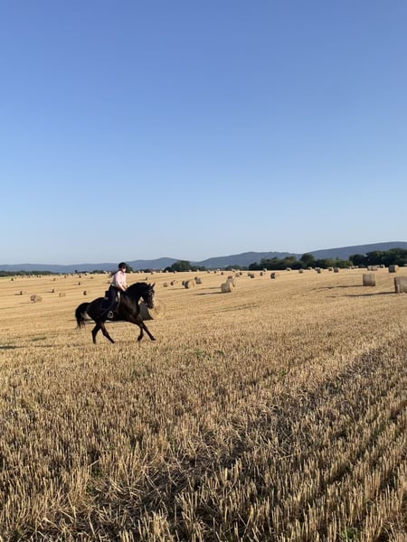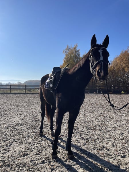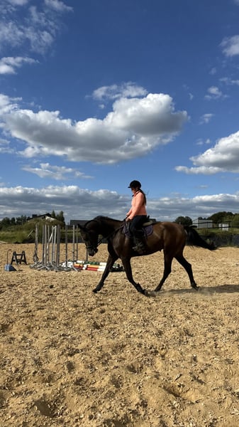 Verkaufe einen jungen, 4-jährigen Wallach (geboren im Mai 2022). Das Pferd verfügt über eine sehr gute Springblutlinie. Es arbeitet sowohl am Boden als auch im Sattel sehr gerne. Im Sattel liegt der Schwerpunkt hauptsächlich auf Dressurarbeit und Longieren, da es noch jung ist. Zweimal wurde es im Parcours getestet – sehr motiviert und mutig. Trotz erster Erfahrungen zeigt es keinerlei Durchbrüche, ist mutig und neugierig, geht sicher auf die Sprünge zu. Im Paddock hat es seine springerischen Fähigkeiten unter Beweis gestellt. Aufgrund seines jungen Alters und Charakters ist es nicht für Kinder oder Anfänger geeignet. Interessenten lade ich herzlich zu einem telefonischen Kontakt ein. Das Pferd stammt aus eigener Zucht, daher kenne ich es sehr gut. Es ist regelmäßig geimpft, entwurmt und gewerkelt. Auf den letzten vier Bildern sind Mutter und Vater zu sehen. Es besitzt sehr gute Papiere; der Vater ist Kandy Progres KWPN, Nachkomme von Zapatero VDL (Grand Prix/CSI-Springen). Kandy Progres wurde Vize-Meister bei den Deutschen Nachwuchschampionat in Strzegom und Vize-Champion bei den Deutschen Sportpferde-Championat in Olsza. Der Verkauf erfolgt aufgrund vollständiger Aufgabe des Reitsports. Es besteht die Möglichkeit, das Pferd mit einem passenden Spring-Sattel vom Sattel-Fitter zu erwerben. Zudem biete ich auch einen 1,5-Pferde-Anhänger, komplettes Reit- und Turnierzubehör zum Verkauf an.