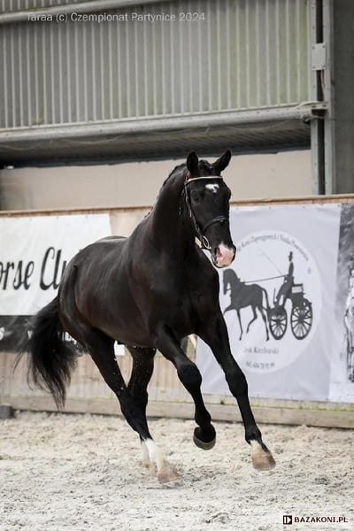 **Faworyt – MG**, ein vierjähriger Dressurwallach, abstammend von dem im Dressursport sehr bekannten und geschätzten Hengst Secret. Die Mutter von Faworyt – MG ist die Stute Falena, korrekt gebaut und mit 82 Punkten bewertet, Gewinnerin des 3. Platzes auf der Zuchttierausstellung Polagra 2013. Neben Faworyt – MG brachte Falena unter anderem die im Dressursport sehr erfolgreiche Stute Fibrina von Believe In Me hervor. Die Stute Fibrina gewann zweimal die Polnischen Meisterschaften der Jungen Pferde – sowohl bei den Fünfjährigen im Jahr 2023 als auch bei den Sechsjährigen im Jahr 2024. Ebenfalls im Jahr 2024 vertrat sie Polen bei den Weltmeisterschaften der Jungen Dressurpferde im niederländischen Ermelo. In diesem Jahr gewann sie zudem die Goldmedaille im Polnischen Hallenpokal im Dressurreiten. In die Fußstapfen ihrer erfolgreichen Schwester tritt ihr jüngerer Bruder, ein weiterer Nachkomme von Falena – der Hengst Free Bird – MG, der bei den Polnischen Meisterschaften der Jungen Pferde 2024 in der Kategorie der vierjährigen Pferde den 3. Platz belegte. Auch Faworyt – MG kann bereits einen ersten Erfolg vorweisen: den 2. Platz beim Niederschlesischen Nutzungschampionat für edle Pferderassen. Neben seiner Schönheit und seinem beeindruckenden Exterieur (174 cm) zeichnet sich Faworyt durch einen außergewöhnlichen Charakter aus: Er ist sehr rittig, angenehm zu sitzen, kooperativ und menschenbezogen. In jeder Situation bleibt er ruhig und gelassen, lässt sich durch nichts aus der Ruhe bringen. Gesund, Röntgenbilder vorhanden und einsehbar. Ein hervorragendes Pferd für jemanden, der ein sicheres Pferd sucht, um sich gemeinsam weiterzuentwickeln und die nächsten Stufen der Dressurkarriere zu erreichen. Transport möglich sowie eine zweitägige Probe am Bestimmungsort.
