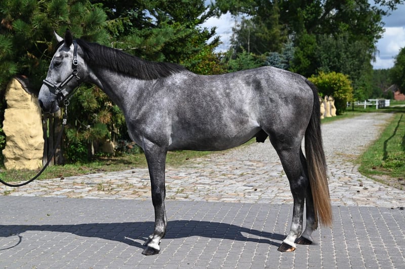 Splendido giovane gelding di altissime linee di sangue cerca una nuova buona casa. Alto, ben costruito con gambe perfette e buone unghie. Ottimi tre andamenti, in particolare un galoppo eccezionale. Erdon è un cavallo molto bello e facile da gestire, ha un carattere molto calmo e amichevole. Le sue origini di classe mondiale lo rendono un candidato eccezionale per il grande sport. Ha un potenziale molto grande e uno stile di salto perfetto. Almeno 10 fratelli competono a livello 160 cm 5 a livello 150 cm 33 a livello 140/145 cm È cresciuto in ampi pascoli con un gruppo di altri giovani. Ha avuto tempo per maturare e crescere in modo sano. Assolutamente nessun vizio o comportamento scorretto, amichevole con altri cavalli. Ogni giorno in grandi paddock. Attualmente 173 cm, finale circa 174/5 cm Ha iniziato lentamente il suo addestramento. Finora conosce la sella e il cavaliere. Il prezzo aumenterà con il livello di addestramento. Ha raggiunto RADIOGRAFIE RECENTI PULITE (7/2025) Vaccinato, sverminato aggiornato. Situato a 50 km dal confine PL/D. Video e ulteriori informazioni su WhatsApp + 48 513 179 245 Il trasporto può essere organizzato.