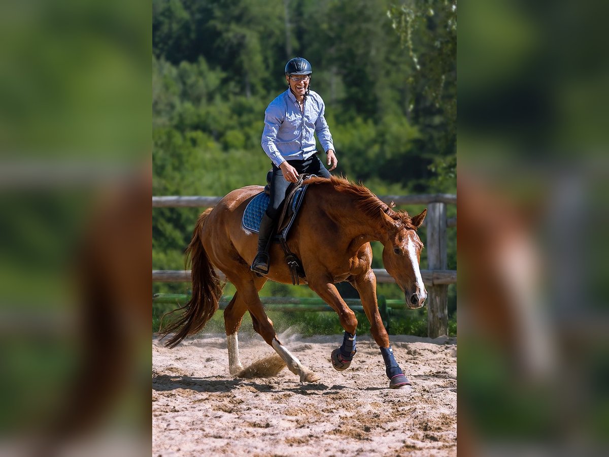 Born 2020, gelding, light chestnut, 4 legs white plus a spot on the belly. Raised on extensive pastures, hills and hills in a diverse herd. Regularly dewormed, fed varied feeds with vitamins, probiotics. Correction of teeth by dentist since he was one and a half years old. Able to be tied, taught to stand calmly when grooming, stands calmly when putting on pads, derrieres, halters. This is a horse nice to handle and contact with people, curious, safe in the field both from the saddle and in hand. Beautiful large hooves. He is derricked in the winter. At the age of one year he had chips removed in his hocks- due to his size and rate of growth we routinely checked his legs so that what needed to be removed was quickly caught so that he could continue to grow up without damage to his joint surfaces. Preparation under saddle by Adam Suslowski. Pre-ridden.