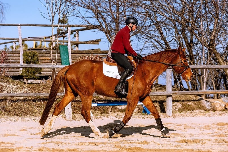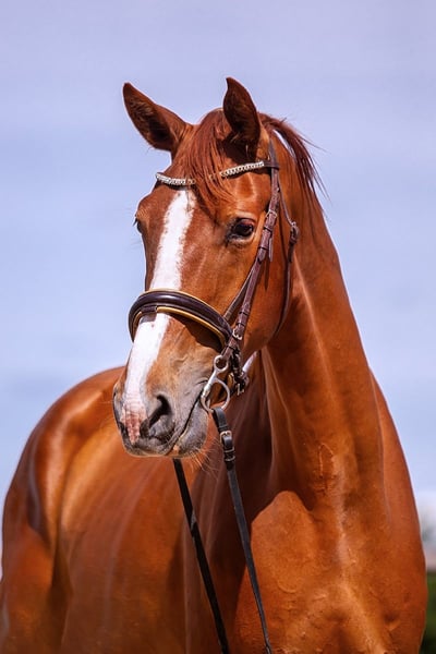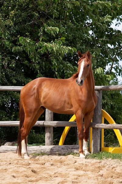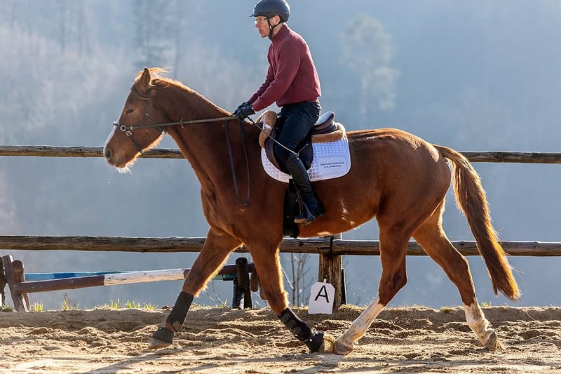 Né en 2020, hongre, alezan clair, quatre jambes blanches plus une tache sur le ventre. Élevé dans de vastes prairies, sur des collines et des pentes avec un troupeau d'âges variés. Vermifugé régulièrement, nourri avec des rations variées enrichies en vitamines et probiotiques. Correction dentaire par un vétérinaire dentiste depuis qu'il a un an et demi. Il sait être attaché, est habitué à rester calme lors des soins, se tient tranquillement pendant la mise en place des protections, des couvertures et des licols. C'est un cheval agréable à manipuler et en contact avec l'homme, curieux, sûr en extérieur tant monté qu'en main. De magnifiques grands sabots. En hiver, il est couvert. À l'âge d'un an, il a subi l'ablation de puces dans les articulations des membres postérieurs - en raison de sa taille et de son rythme de croissance, nous avons régulièrement vérifié ses jambes, ce qui a permis de détecter rapidement ce qui devait être retiré afin qu'il puisse continuer à grandir sans compromettre les surfaces articulaires. Il possède des radiographies actuelles de ses membres. Préparation sous la selle par Adam Susłowski. Cheval en entraînement de base. Il a des radiographies actuelles de ses membres.