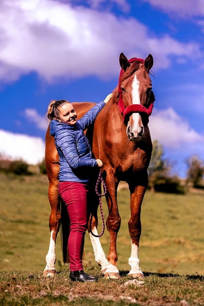 Urodzony 2020 r, wałach, jasny kasztan, 4 nogi białe,łysina plus plama na brzuchu. Aviator jest rasy wielkopolskiej po ogierze Vigo Heywood H Z z matki rasy wielkopolskiej Alaska po Maks, 177 cm. U nas od żrebięcia miał zapewnione warunki, dzięki którym wzmocniał na bieżąco w czasie rośnięcia stawy, ścięgna,kości, kopyta. Wychów 24 h na pastwiskach o zróżnicowanym terenie i podłożu to najlepsza profilaktyka chroniaca przez chorobami ściegien, stawów, płuc, daje wygalopowane płuca i kopyta oraz jedno z najważniejszych aspektów daje zdrowie psychiczne. Wychowany na rozległych pastwiskach, górkach i pagórkach w różnowiekowym stadzie, doś zabawowy typ, potrzebuje do szczęścia innych wałachów do zabaw. Regularnie odrobaczany, karmiony zróżnicowanymi paszami z witaminami, probiotykami. Piękne duże kopyta Korekta zębów przez stomatologa odkąd skończył półtorej roku. Umie być wiązany, nauczony spokojnego stania przy zabiegach pielęgnacyjnych, spokojnie stoi przy zakładaniu ochraniaczy, derek, kantarów. Jest to koń miły w obsłudze i kontakcie z człowiekiem, ciekawski ale nie nachalny, bezpieczny w terenie zarówno z siodła jak i w ręku.. W zimie jest derkowany. W wieku jednego roku miał usuwane chipy w stawach skokowych- ze względu na jego wielkość i tempo rośnięcia rutynowo sprawdzaliśmy nogi dzięki czemu szybko zostało wyłapane to co należało usunąć tak aby mógł dalej dorastać bez uszczerbku na powierzchniach stawowych. Posiada aktualne zdj RTG nóg, brak śladów po usuwaniu. Chodzi na lonzy pojedynczej i podwójnej, chodzi w teren i nie ma bezpieczniejszego konia od niego przy okazji wszystkie czereśnie z lasu twoje. Przygotowywany pod siodłem przez Adama Susłowskiego. Koń w podstawowym treningu od marca chodzi 2 razy w tygodniu. Naszym celem nie jest jeżdżenie codziennie i przygotowanie wszechstronne konia, aby dobrze rozumiał pomoce, aby był miły na kontakcie, poruszał się z umiejętnością wydłużania szyi i grzbietu. W jeździe delikatny, wsłuchany, bezpieczny, nie jest demonem prędkości, preferuje spokojną jazde ale odczucia pięknego miłego kołysania grzbietu sa nie do podrobienia. Nie wykazuje zacięcia sportowego. To miły, piękny i zdrowy kon do spokojnej bezpiecznej jazdy, z uwagi na gabaryty raczej do spokojnej jazdy bez zrywów. Nie wymaga inwestycji w leczenie (kopyt, zębów itd.)