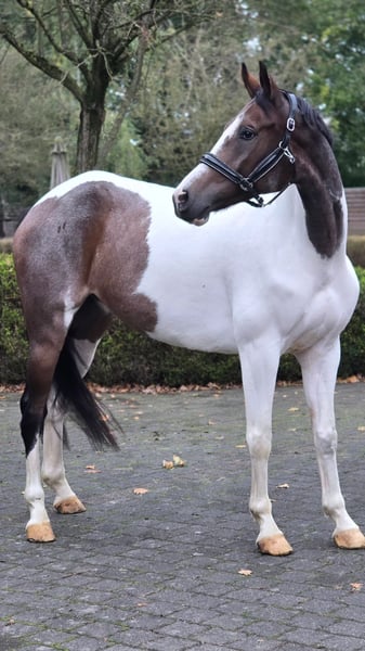 For sale: Beautiful 7-year-old paint gelding. An uncomplicated and well-behaved horse, friendly and calm in daily handling. Alvaro is ridden for leisure and hobby purposes. Due to a slight misalignment in the front left, he is being offered well below his actual value. An ideal leisure horse for anyone looking for a balanced and reliable partner.