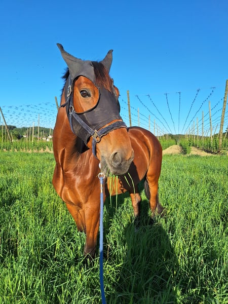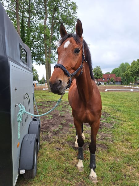 Nach langer Überlegung muss ich mich aufgrund privater und beruflicher Veränderung leider von meinem 9-jährigen Wallach (geb. Mai 2017) trennen. Bumblebee hat ein Stockmaß von 1,75 m und ist ein polnisches Warmblut mit deutschen Wurzeln. Er ist regelmäßig geimpft (halbjährlich Influenza & Herpes, Tetanus), bekommt einmal im Jahr Besuch vom Zahnarzt und halbjährlich Physio. Er hat aktuell keine Eisen und kommt damit auch im Gelände sehr gut klar. Er steht in Boxenhaltung und kommt ganzjährig in einer Wallachherde auf die Koppel. Er ist sowohl mit Wallachen als mit Stuten absolut verträglich. Bumblebee ist in den letzten 3 Jahren bei mir vielseitig beschäftigt worden. Er kennt Ausritte alleine und in der Gruppe und hat sich insbesondere in der Gruppe als sehr brav hervor getan. Wenn er alleine im Gelände unterwegs ist, braucht er meistens noch etwas Sicherheit durch seinen Reiter. Er kennt längere Hängerfahrten, Auswärtstraining, Turniere (mit und ohne Übernachtung) und hat sich hier im Umgang als stets unkompliziert herausgestellt. Er ist am Turnier A* gelaufen, wurde allerdings aufgrund Zeitmangel meinerseits seit Mitte 2025 nicht mehr gesprungen. Bumblebee benötigt beim Springen viel Zeit und eine gute Basis, um die nötige Sicherheit im Parcours zu entwickeln. Da ich denke, dass er deutlich mehr Spaß an einem Dasein als Freizeitpferd hat, möchte ich ihn explizit nicht als Springpferd/Sportpferd abgeben.! Bumblebee ist beim Reiten hin und wieder etwas umweltorientiert, bleibt aber stets händelbar und weist keine Unarten wie Steigen oder Buckeln auf. Aufgrund seiner Größe, seines Alters und Temperaments ist er jedoch nicht für Anfänger/Wiedereinsteiger geeignet. Eine aktuelle AKU liegt nicht vor, kann aber gerne auf Kosten des Köufers gemacht werden. Passendes Equipment (Sattel, Trense, Zubehör) ist vorhanden und kann gegen Aufpreis übernommen werden. Gerne verschicke ich auf Anfrage Videos und beantworte weitere Fragen.