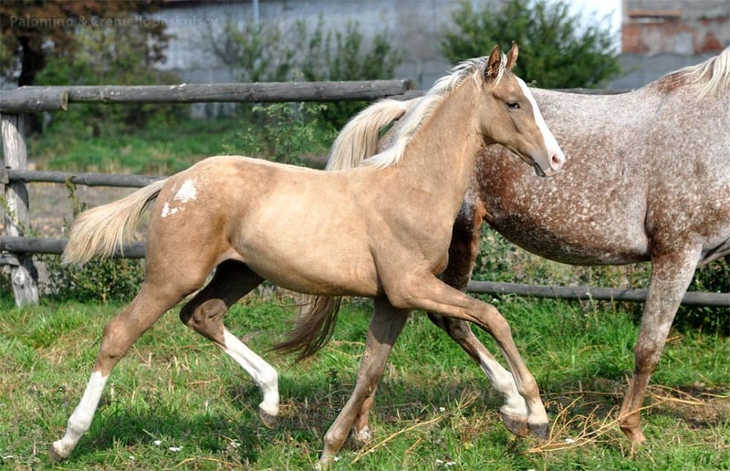 Palomino warmblood mare born 2023 Very interesting prospect for sport and breeding. Sire Urano de Cour au Bois (Baloubet du Rouet x Kannan) : https://www.gfeweb.com/fr/liste-etalons/urano-cour-bois-cheval-sport-belge-alezan,98.html We have other palomino and cremello horses / foals 2025 available. 3 photos with mare, 4 sire, 5 dam. Located Poland Facebook: @PalominoJaskulscy