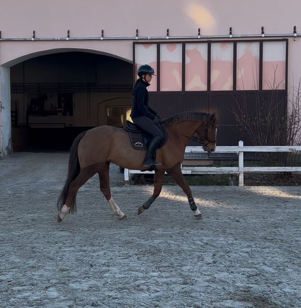 ✨ Wyjątkowa okazja! ✨ Na sprzedaż perspektywiczna klacz o wyjątkowej urodzie i fantastycznym charakterze. Korli to koń z potencjałem, który od pierwszych chwil daje czystą przyjemność z jazdy. Jest niezwykle jezdna, odważna i ma bardzo dobrą głowę. Proludzka, chętna do współpracy, zawsze zaangażowana pod siodłem – to jeden z tych koni, na których po prostu chce się jeździć. Od 2,5-latki w jednych rękach, jeżdżona wyłącznie przez profesjonalistów, dzięki czemu jest delikatna na pomoce, świetnie reaguje na dosiad i nigdy nie była „popsuta”. Bardzo czysty, jakościowy materiał do dalszej pracy i rozwoju. Na początku 2025 roku dała jednego źrebaka, a obecnie jest w regularnym treningu skokowym i rozpoczęła pierwsze starty po przerwie. W parkurze dokładna, odważna, dobrze kryjąca teren, z bardzo dobrą techniką. Na zawodach zachowuje się jak u siebie w domu – spokojna, skupiona, mimo jeszcze niewielkiego doświadczenia. Przed ciążą brała udział w zawodach i treningach wyjazdowych adekwatnych do młodego wieku. Trenowana była zawsze bez pośpiechu czy presji sprzedażowej. Jest koniem bezpiecznym bez narowów czy niepożądanych zachowań. Odważna w terenie - chodzi sama jak z innymi końmi. Nieduża – wzrost ok. 161–162 cm, ale w pełni nadrabia to sercem i jakością. Idealnie sprawdzi się dla drobniejszego jeźdźca, który szuka konia czułego na pomoce i dającego ogromne poczucie kontroli. Zdrowa. Miała wykonywany TUV jako 4 lata - idealny, bez wad. Jest bezproblemowa w transporcie, kowalu, goleniu, weterynarzu. Ojciec: Zangersheide Corleone Z. Szukam dla niej najlepszego możliwego domu – sprzedaję ją z naprawdę ciężkim sercem, wyłącznie z powodu zmiany sytuacji życiowej i wyjazdu za granicę. Cena będzie rosła wraz z dalszym treningiem i startami. Możliwość umówienia płatnej jazdy próbnej. Koń, który ma wszystko: charakter, głowę, jakość i serce do skoków. Osoby poważnie zainteresowane zapraszam do kontaktu przez whatsap, chętnie wyśle filmy i więcej info.
