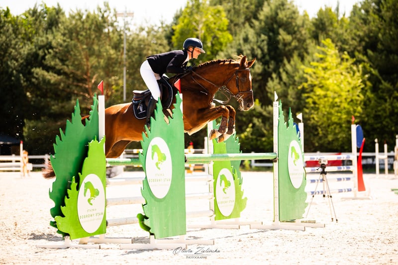 Sprzedam 9 letnia klacz Prosto od hodowcy Doświadczona w skokach do kl. P Ujeżdżenie do kl. C Przyjemna do jazdy, bezpieczna, jeżdżona tylko przez kobiety! Równa i delikatna na pomocach, poradź sobie z nią dziecko oraz amator. Bardzo lubi skakać Chodzi w tereny i na padok. Zdrowa, kuta na przód. Bez problemu jeździ przyczepą, małym koniowozem czy ciężarówką do wszystkiego wsiada bez problemu.