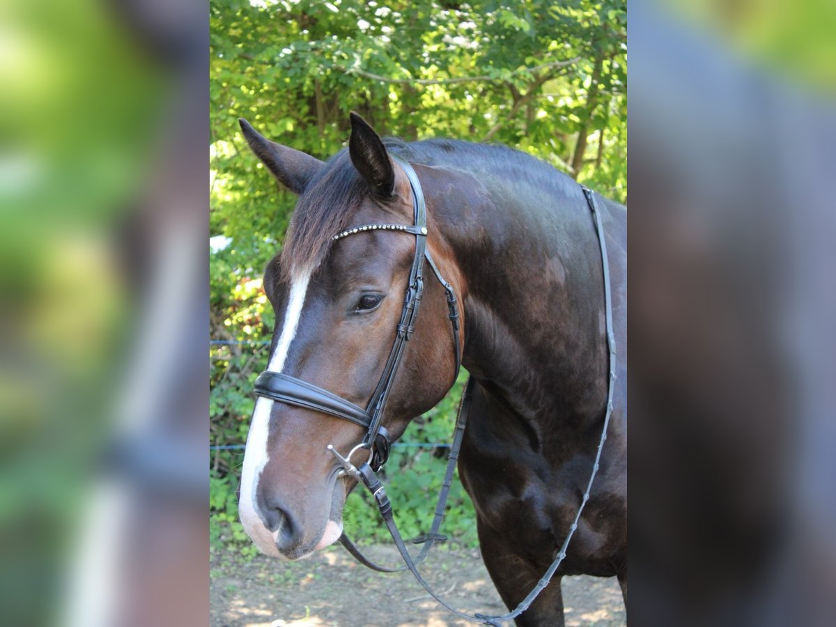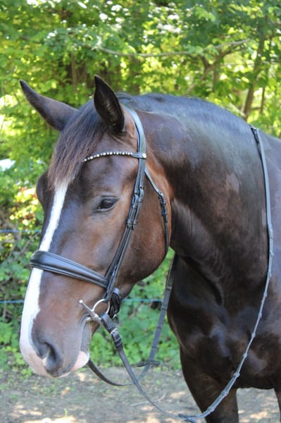Aus Zeitgründen verkaufen wir unseren Wallach, den wir 3jährig mit kleiner AKU gekauft haben. Er ist sehr menschenbezogen , neugierig und nervenstark. Er wird regelmäßig von einer 19jährigen sowie Bereiterin geritten. Am liebsten geht er ins Gelände, momentan nur mit Zweitpferd. In der Halle oder Platz sinkt seine Motivation, hier ist Anfangs Durchsetzungsvermögen gefragt und dann läuft er auch sehr gut. TA, Hufschmied ist alles kein Problem. Er ist Barhufer, kennt aber Beschlag. Im Gelände trägt er vorne Hufschuhe. Er ist kein Anfängerpferd.